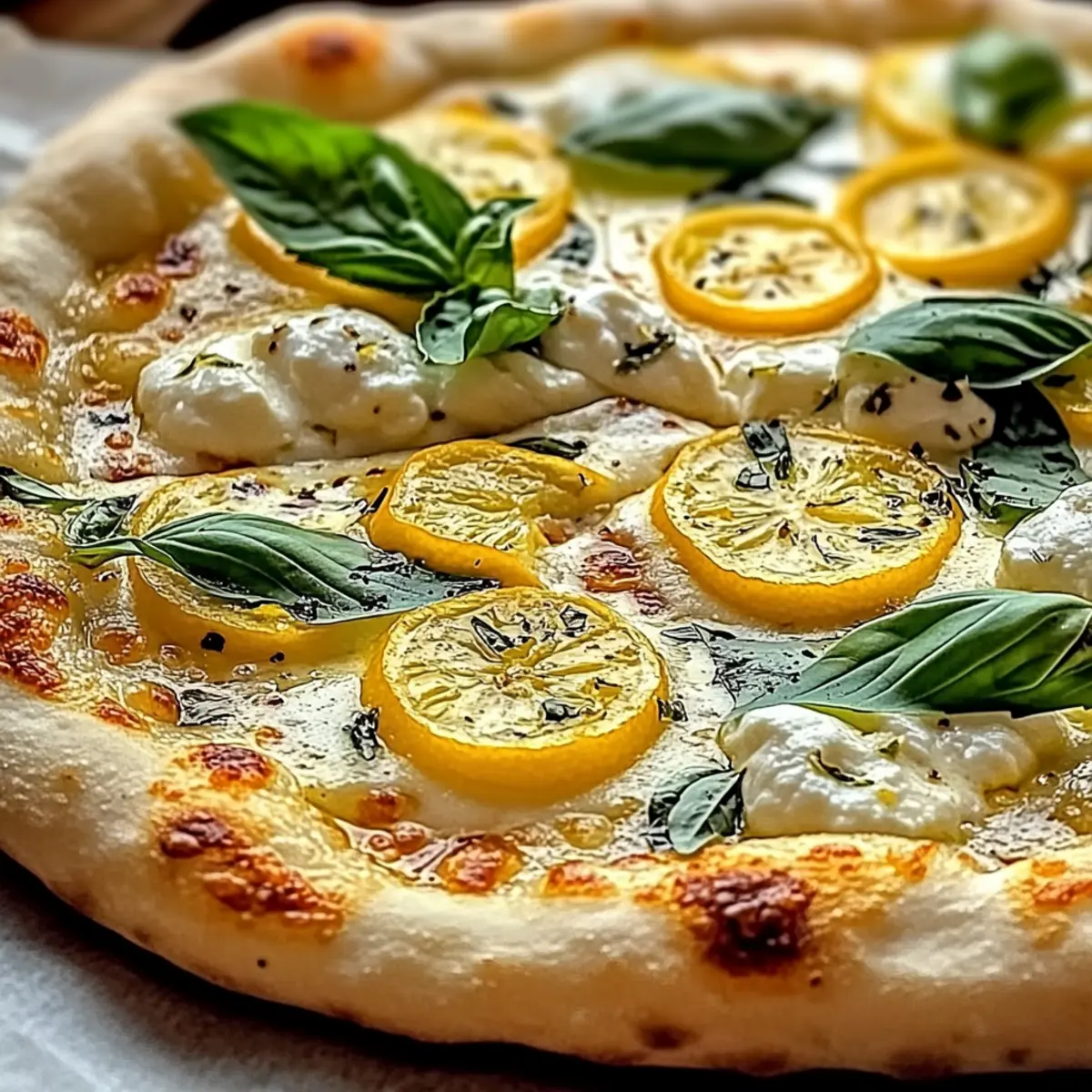 Carefully slide your assembled pizza onto the preheated pizza stone in the oven. Bake for 10 to 14 minutes, keeping an eye on the crust; it should be bubbling and turn a beautiful golden brown when done. This step will unleash the delightful aromas of lemons and cheeses filling your kitchen.