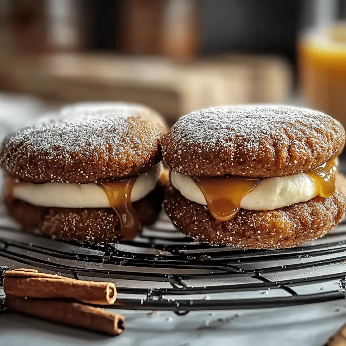 Once the cookies are completely cool, take one cookie and spread a generous layer of caramel filling on the flat side. Top it with another cookie, pressing gently to create a sandwich. The sweet, sticky caramel will ooze slightly when you take a bite, making these Apple Cider Whoopie Pie Cookies irresistible.