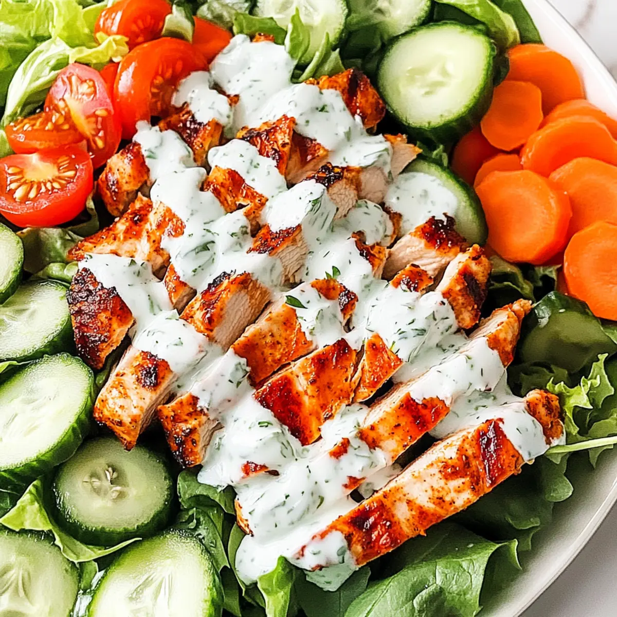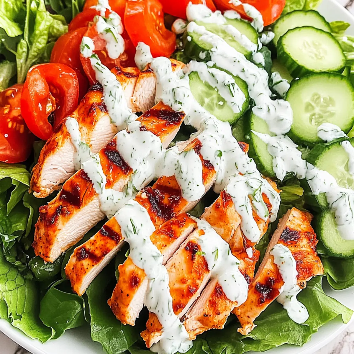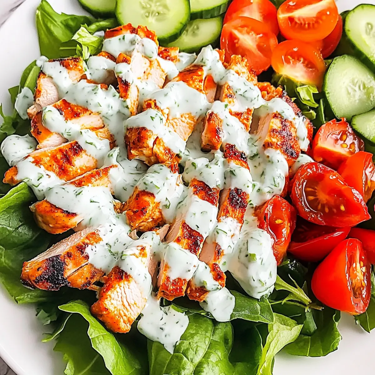 Once the chicken has finished cooking, slice it into strips and gently add it to the mixed salad. Drizzle the creamy ranch dressing over the top and toss everything together lightly, ensuring all ingredients are coated. Finish by sprinkling blue cheese crumbles for an extra burst of flavor, and serve immediately for a light yet hearty meal that everyone will love.