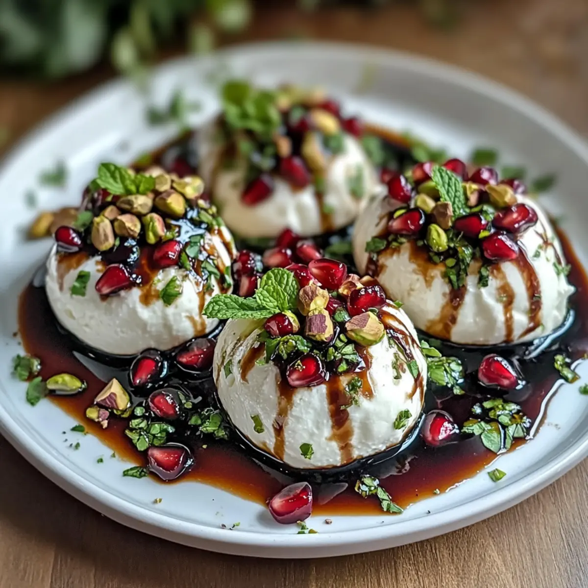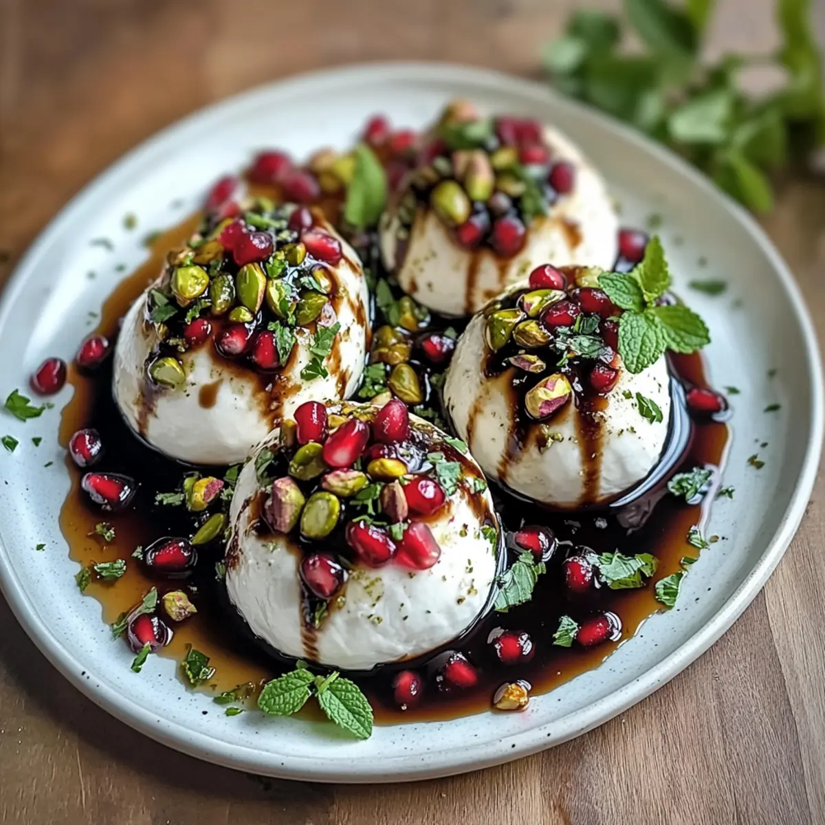 Prep Ahead: While the burrata balls are best served fresh, you can prepare the toppings like pomegranate seeds and pistachios a day in advance. Store these separately to maintain their freshness.