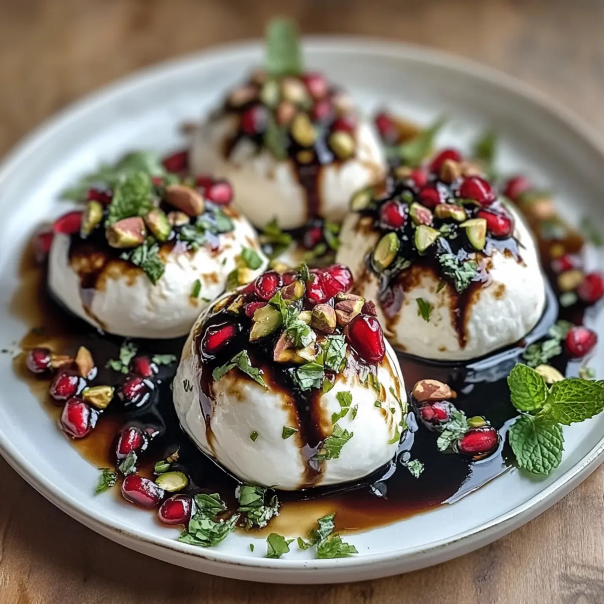 The secret lies in assembly! Aim for an elegant presentation by evenly spacing the burrata balls on a beautiful platter. When adding pomegranate seeds and pistachios, feel free to create a colorful cascade over the cheese. A drizzle of balsamic glaze and a sprinkle of flaky sea salt just before serving enhances both the visual appeal and the flavors, making it a real showstopper!