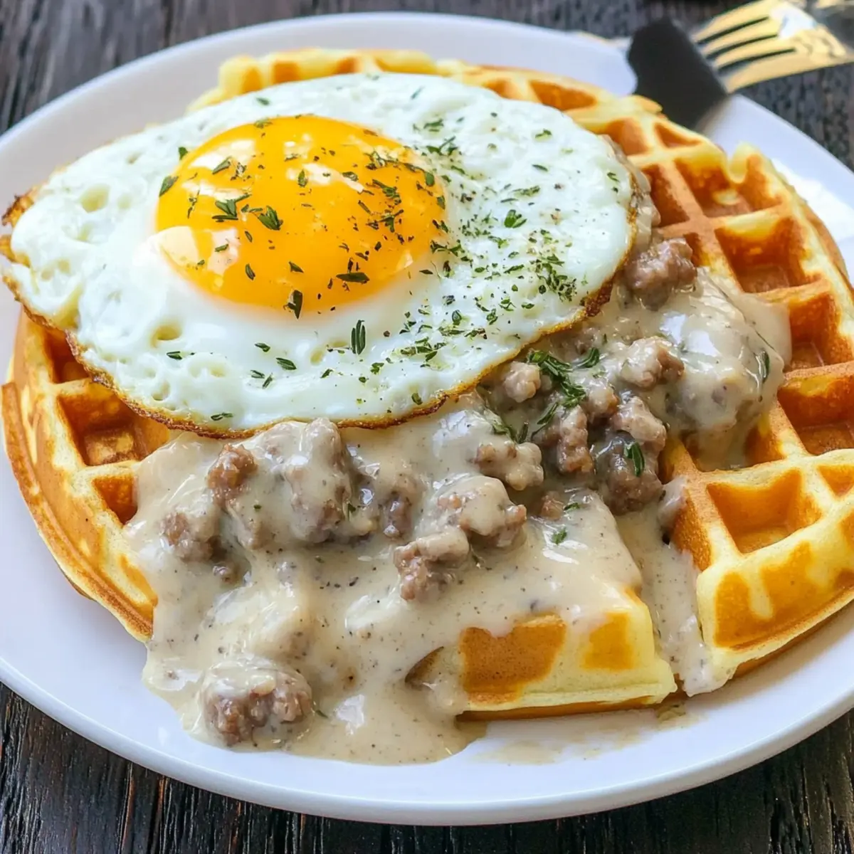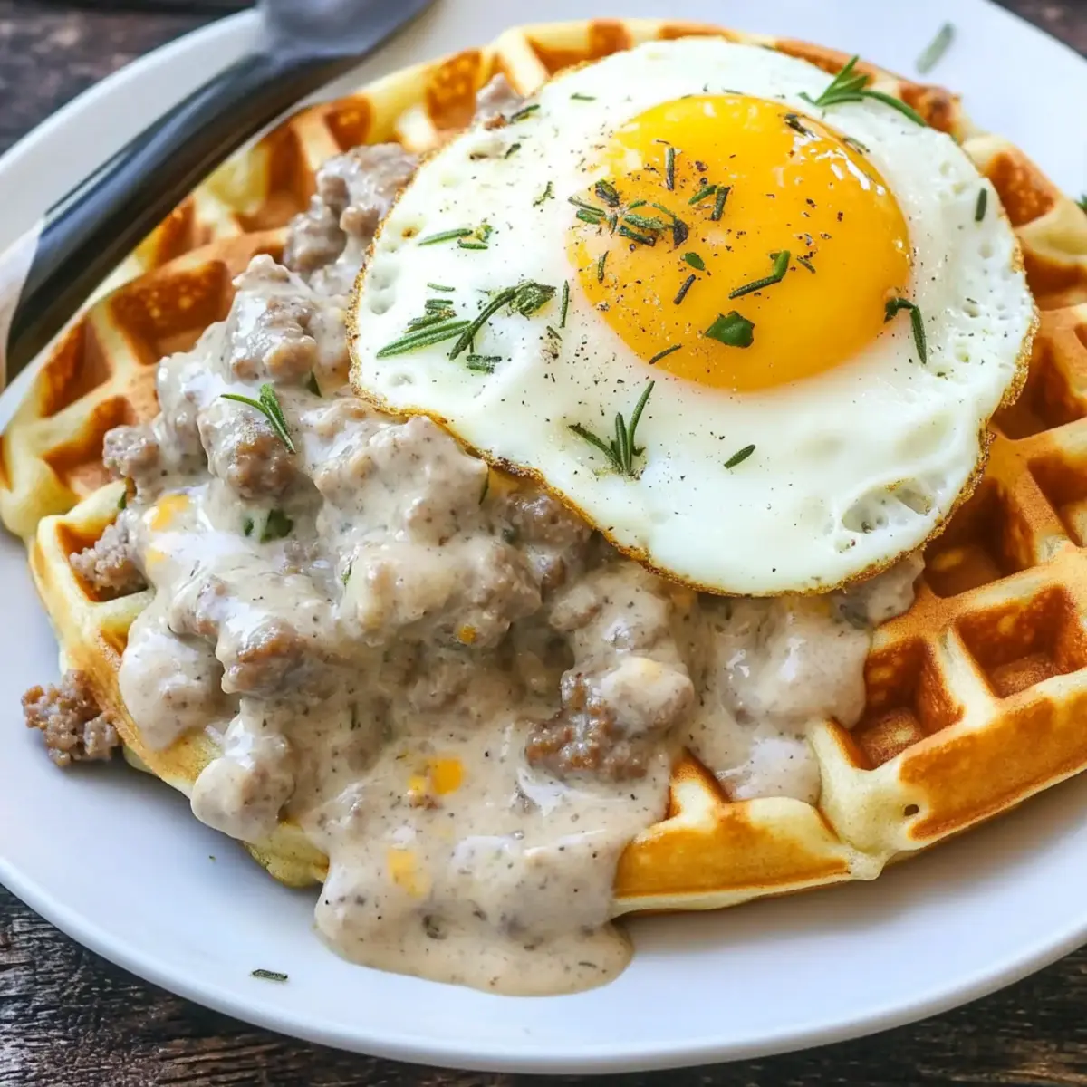 Crowd-Pleaser: Perfect for family brunches or gatherings, these waffles topped with creamy sausage gravy promise to satisfy even the hungriest appetites. Enjoy a side of soft scrambled eggs or fresh fruit to complete this delightful meal!