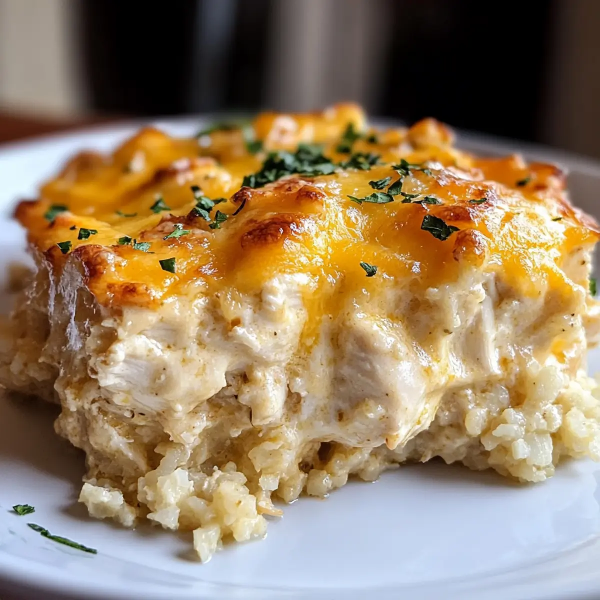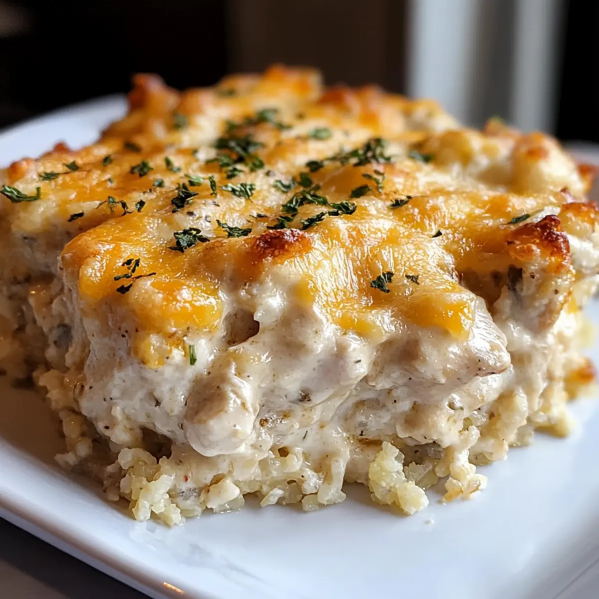 After baking, let your Cheesy Chicken Riced Cauliflower Casserole rest for about 10-15 minutes before serving. This resting period allows the dish to set, making it easier to portion. Once plated, consider garnishing with fresh parsley for a pop of color and serve warm, reveling in the deliciousness of your creation!