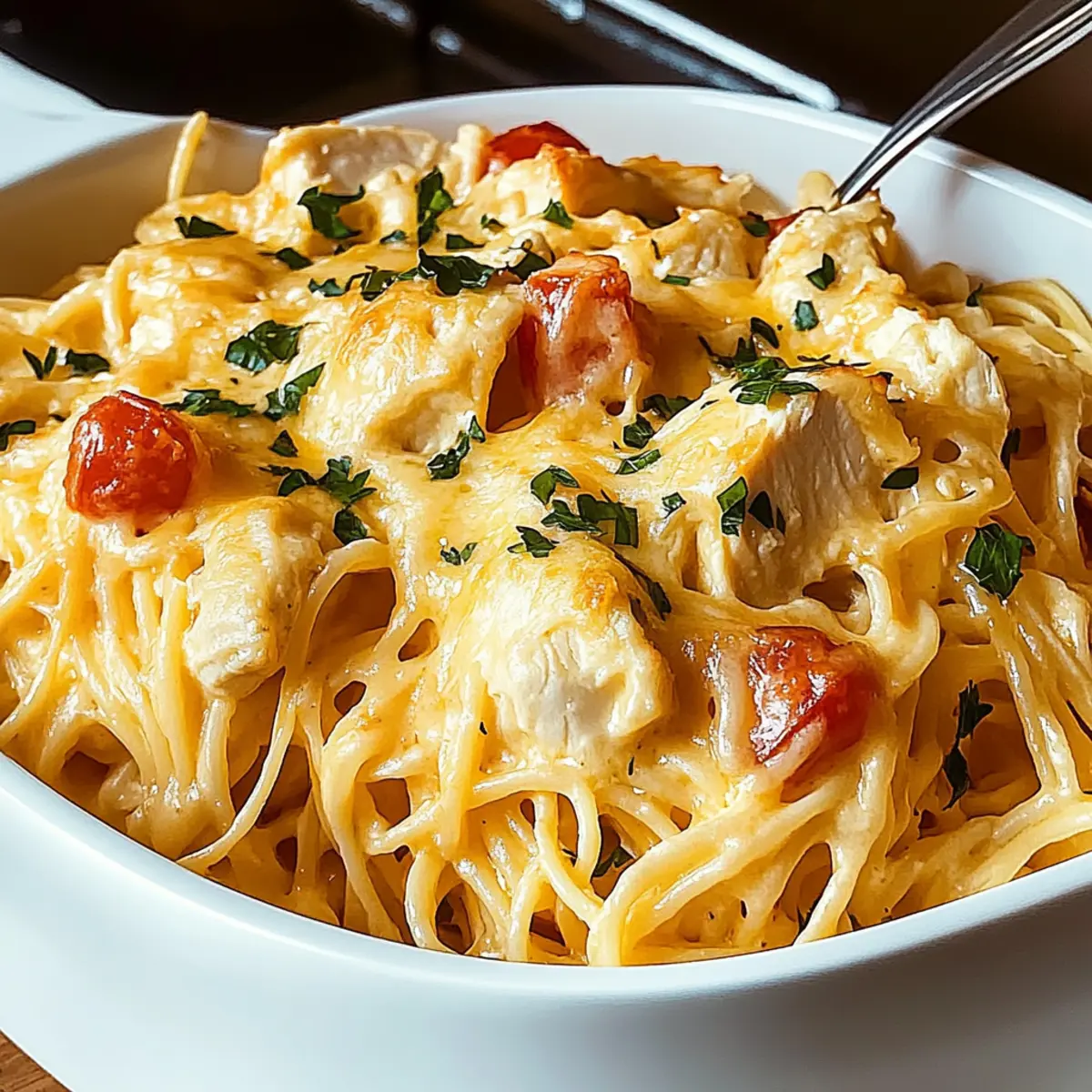 Taste as You Go: Don’t forget to taste the sauce before mixing in the spaghetti and chicken. Adjust the seasoning as needed for the best flavor.