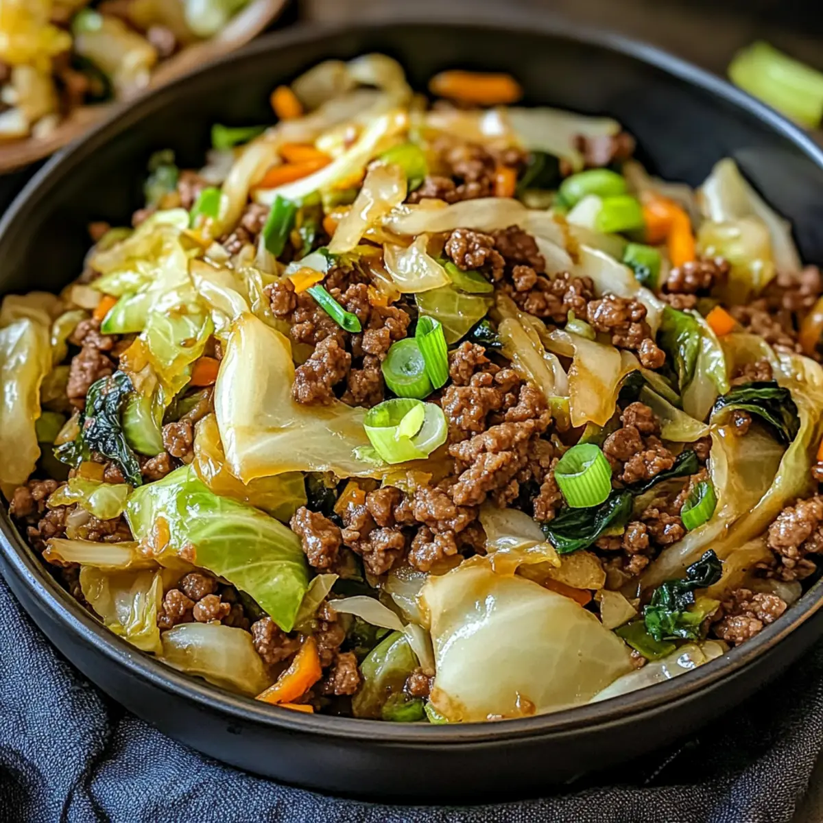 Quick and Easy: No more spending hours in the kitchen! This Chinese Ground Beef and Cabbage Stir Fry can be whipped up in just 15 minutes, making it the perfect solution for hectic evenings.