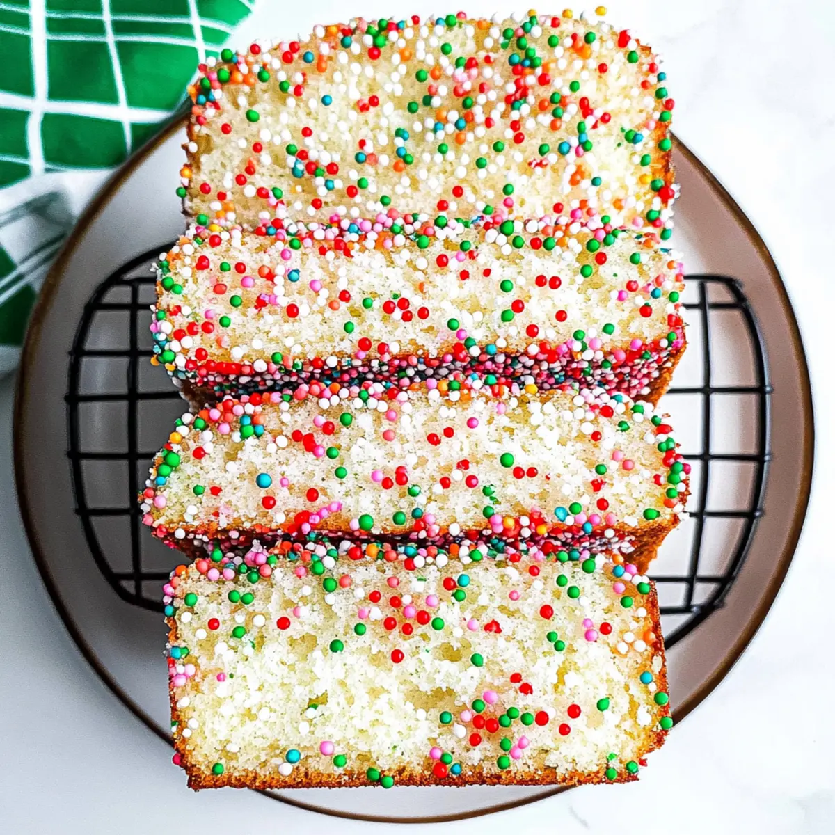 • Watch the Sprinkles: Use jimmies for colorful fun, but avoid nonpareils in the batter as they may bleed; sprinkles should be a party on the bread’s surface, not in the mix!
