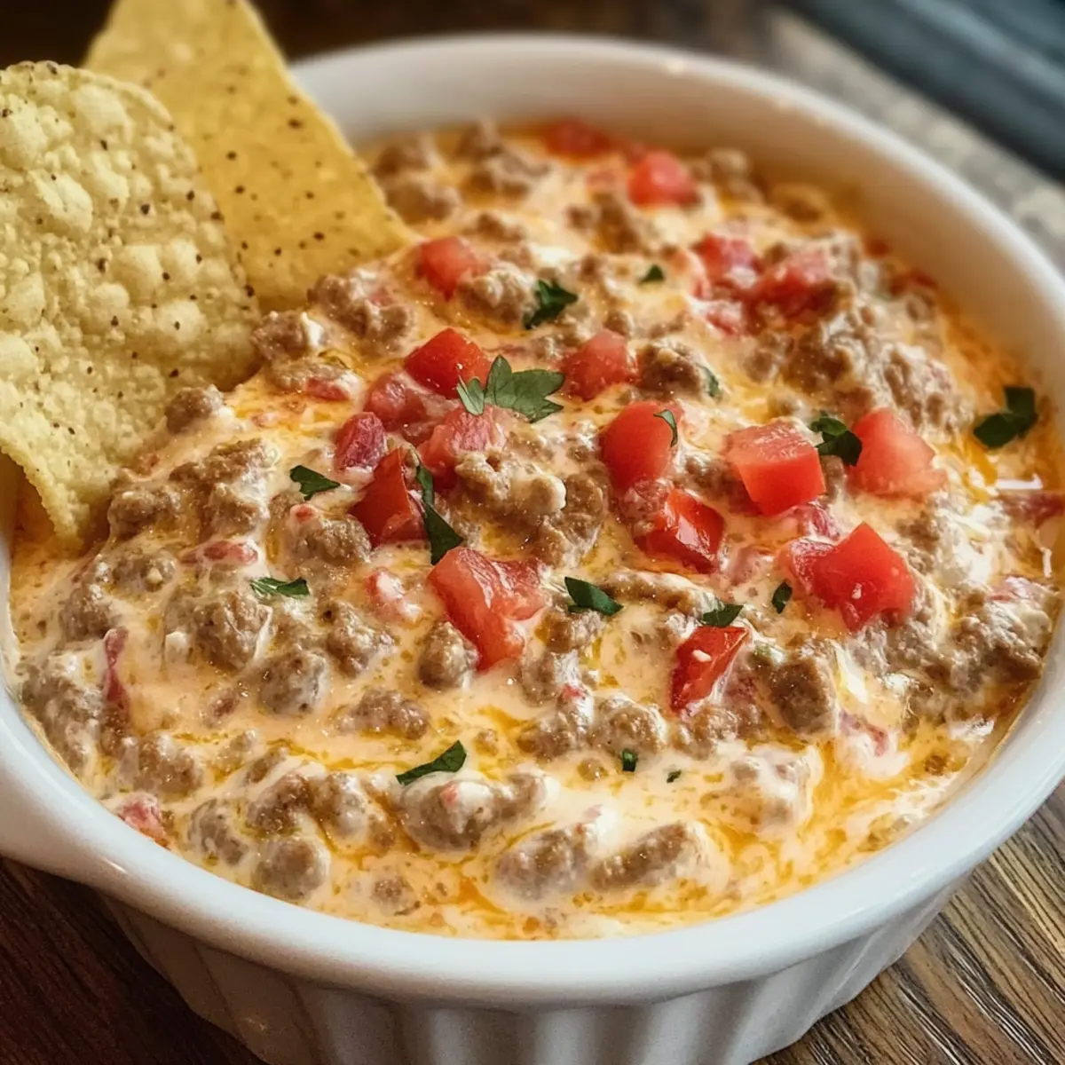 Cream Cheese Rotel Dip is a zesty, creamy delight perfect for gatherings, combining rich cream cheese, savory sausage, and tangy Rotel tomatoes.