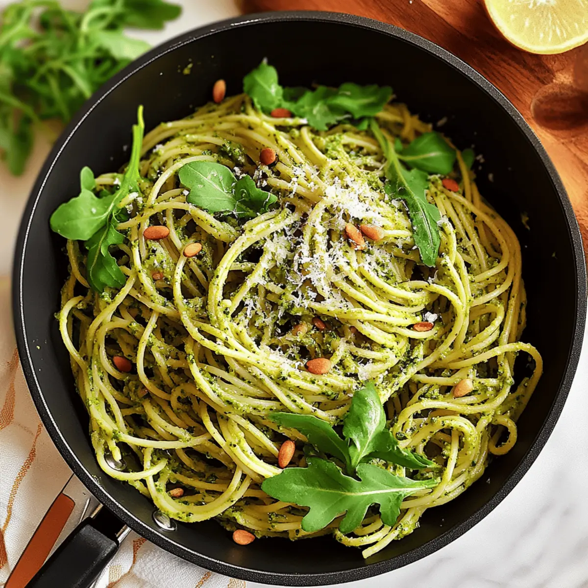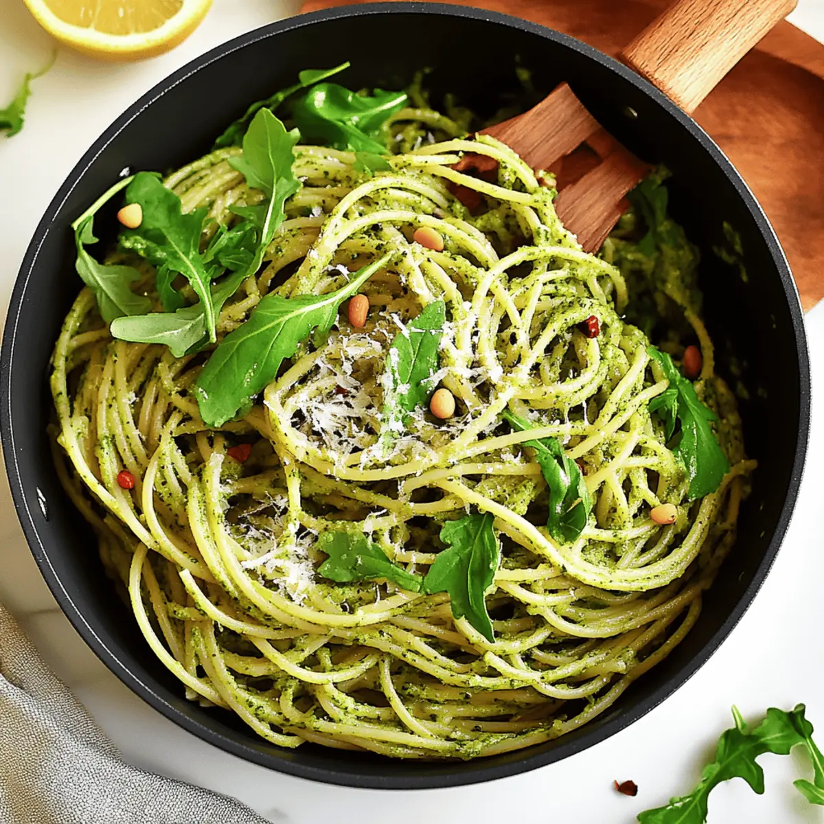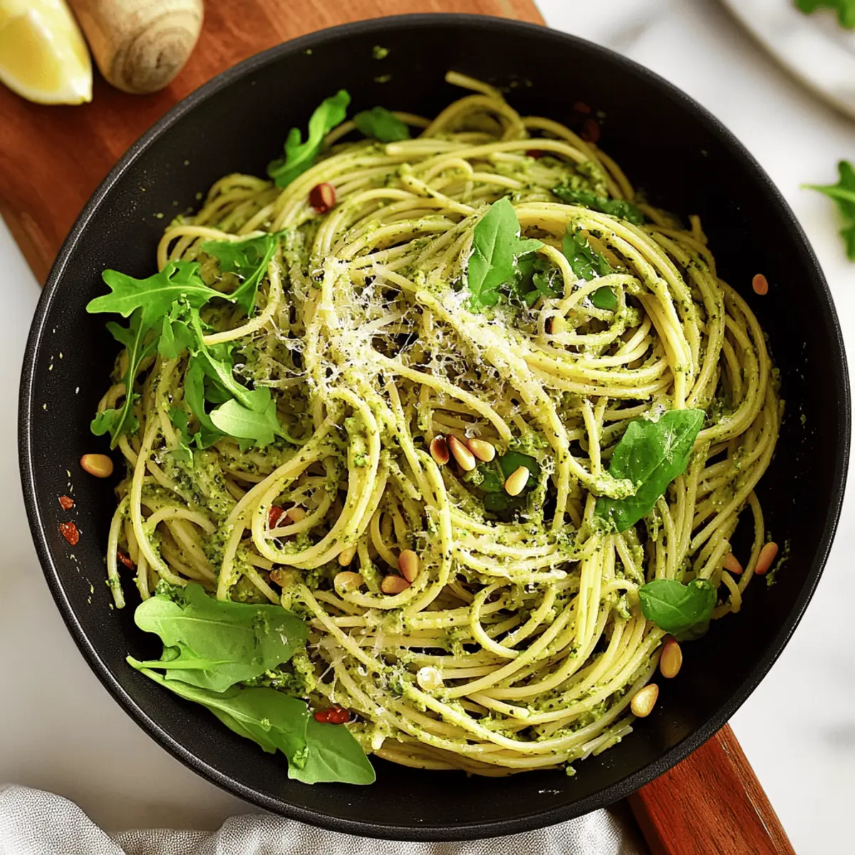 Creamy Arugula-Infused Vegan Pesto Spaghetti for Quick Joy