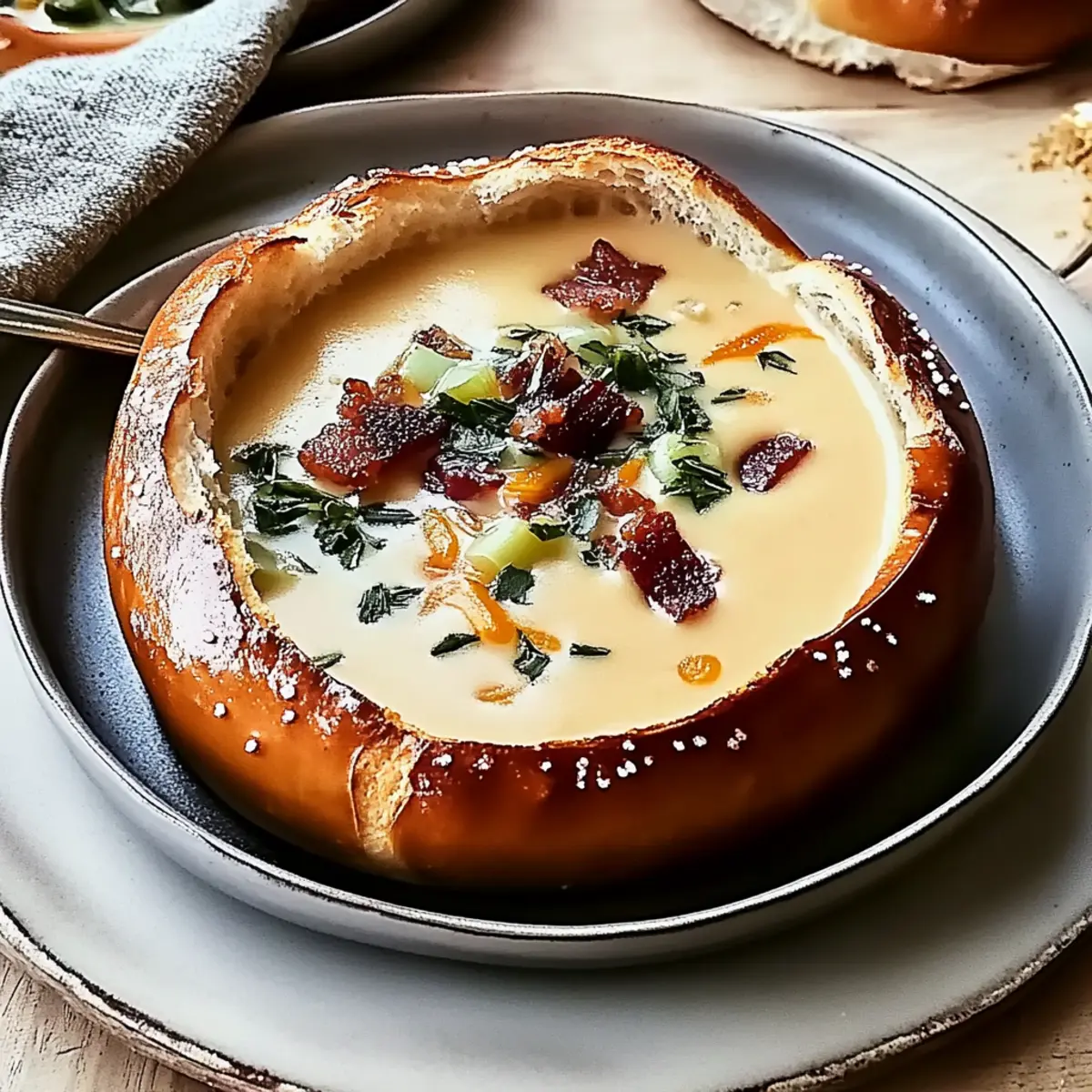 Very! You can easily customize it for gluten-free diets by substituting the pretzel buns with gluten-free bread or enjoying the soup solo. For vegetarian options, replace chicken stock with vegetable broth and omit the bacon; adding hearty veggies like mushrooms or broccoli will keep it flavorful.