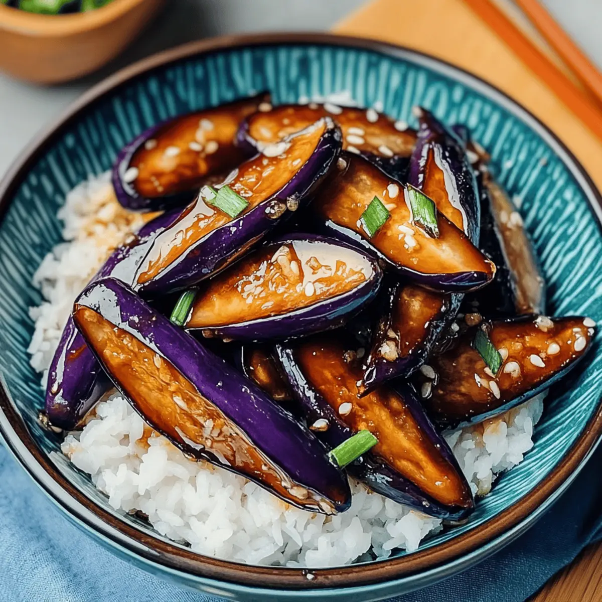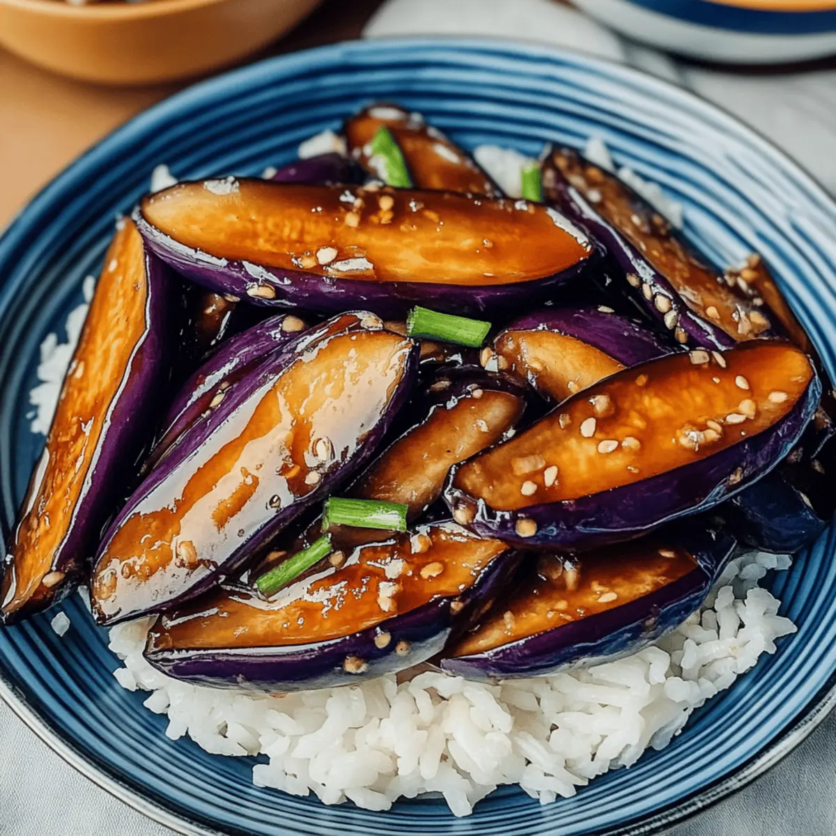 Stir-Fried Vegetables: Add a colorful medley of bell peppers, bok choy, and snap peas for a fresh crunch and vibrant contrast to the eggplant.