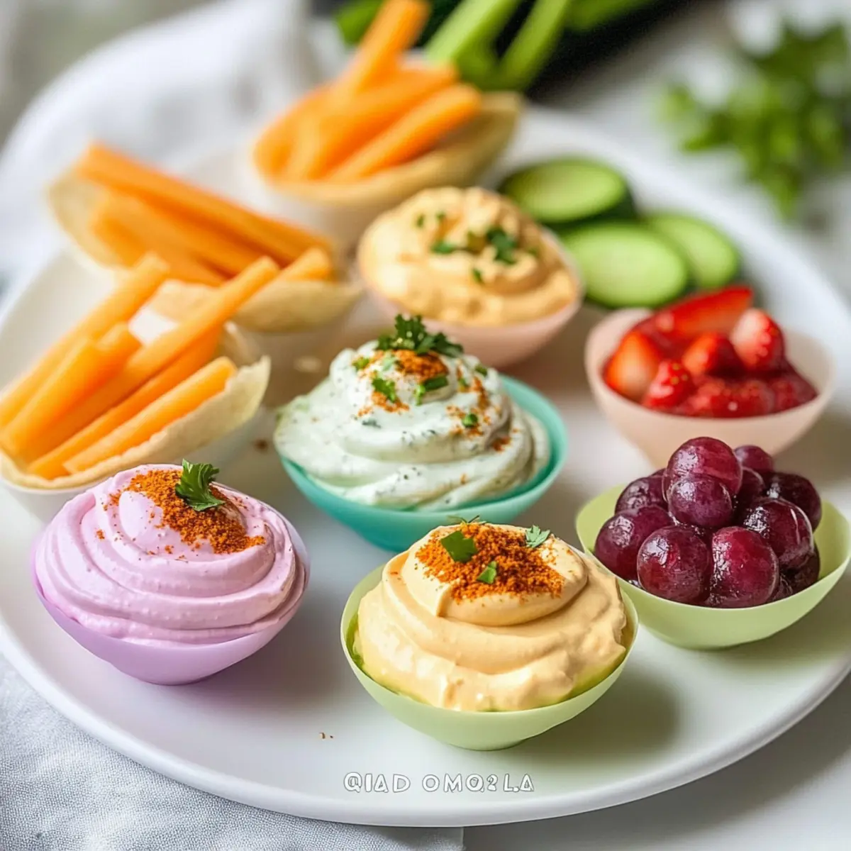 - Fill each colored egg white with the yolk mixture using a spoon or piping bag. Arrange them on a decorated platter.