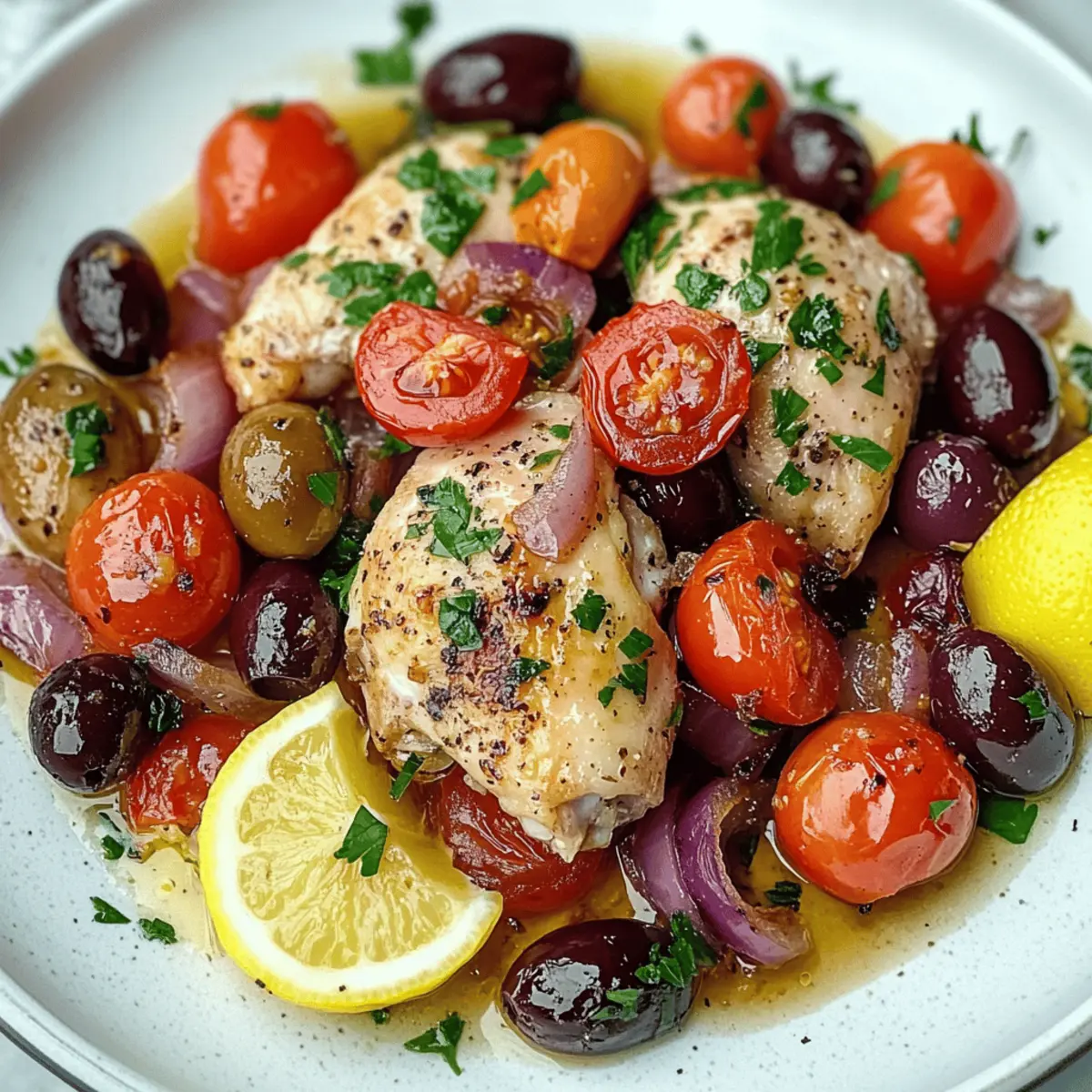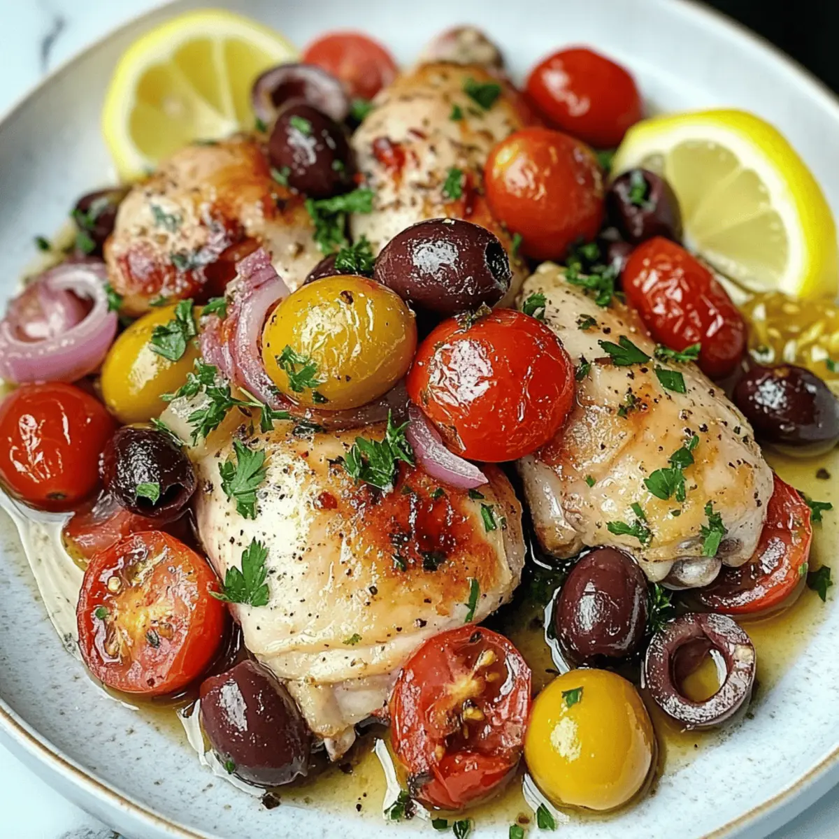 Vibrant Flavors: The combination of succulent chicken thighs, colorful vegetables, and kalamata olives brings the Mediterranean to your table, creating a meal that’s both tasty and visually appealing.