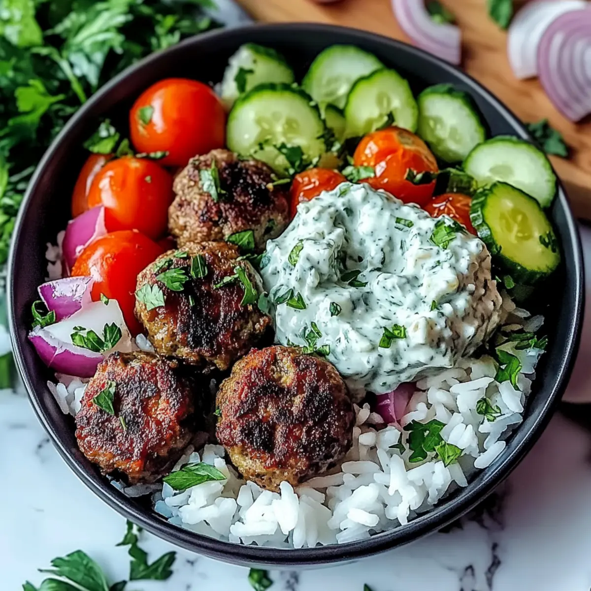 • Discover the essential components for this delicious Greek Meatball Bowl with Tzatziki, Rice & Fresh Veggies.