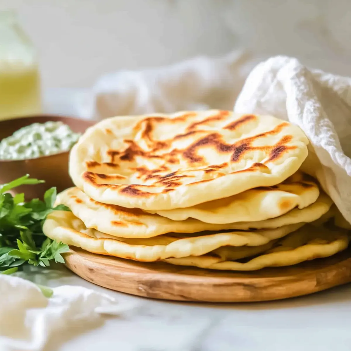 Delight in homemade Greek pita, soft and versatile, perfect for wrapping fillings or enjoying with dips.