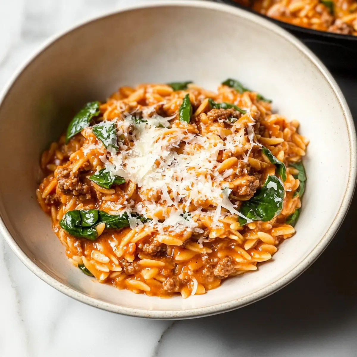 A creamy delight featuring ground beef and orzo in a rich tomato cream sauce, perfect for quick weeknight dinners.