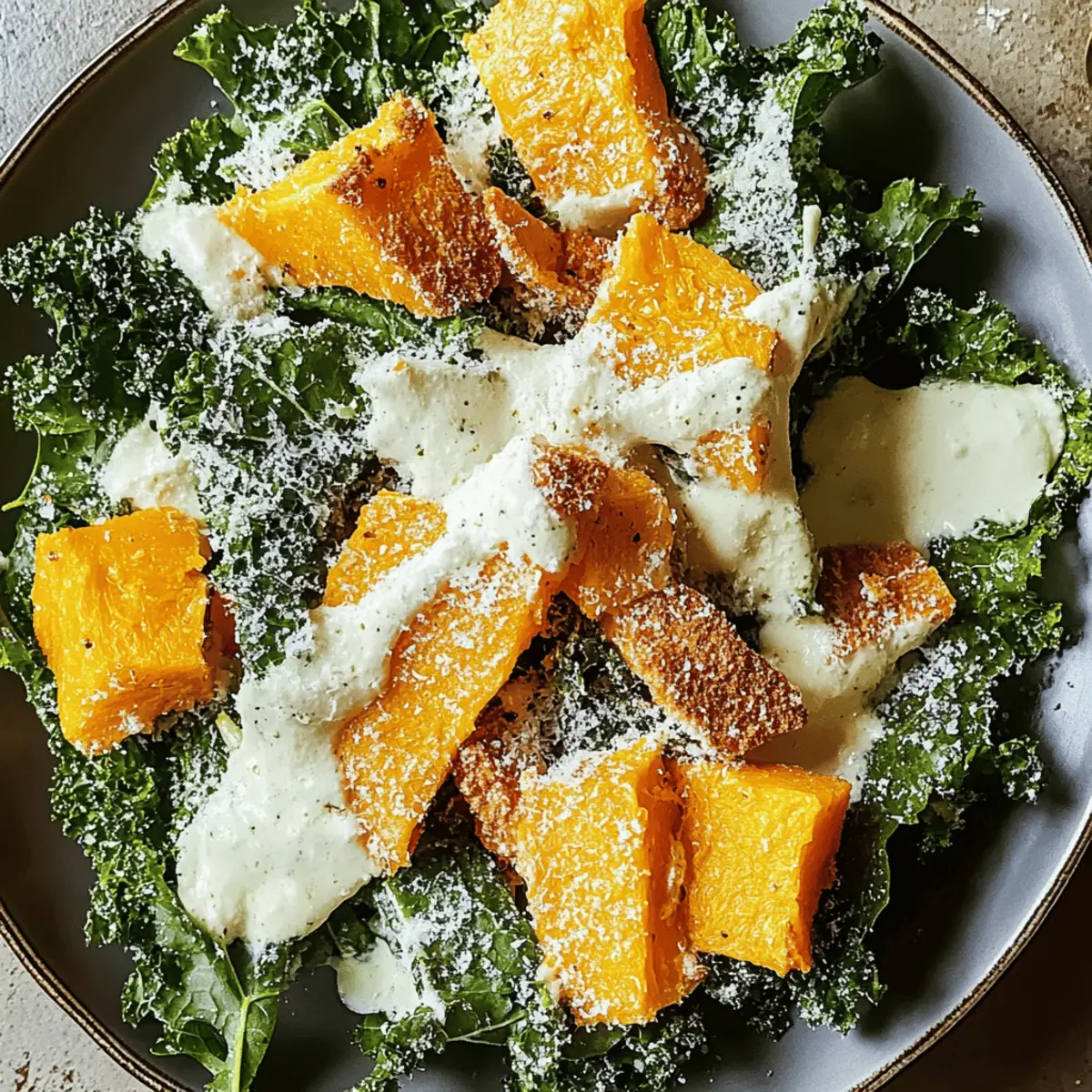 This Harvest Caesar Salad with Crispy Frico Squash Croutons is a delightful twist on a classic, featuring roasted squash and creamy dressing.