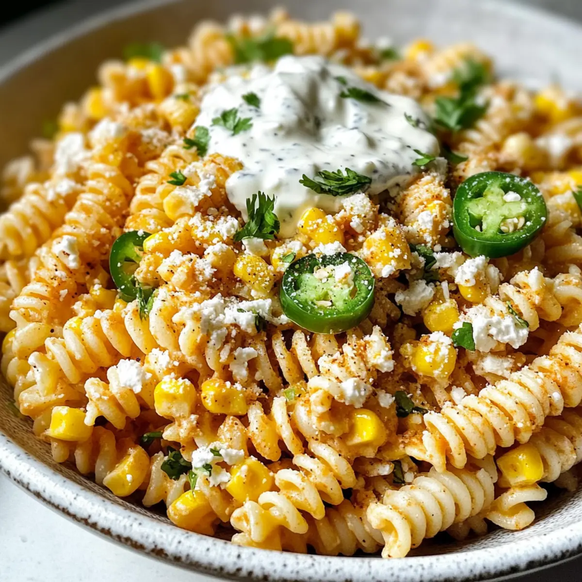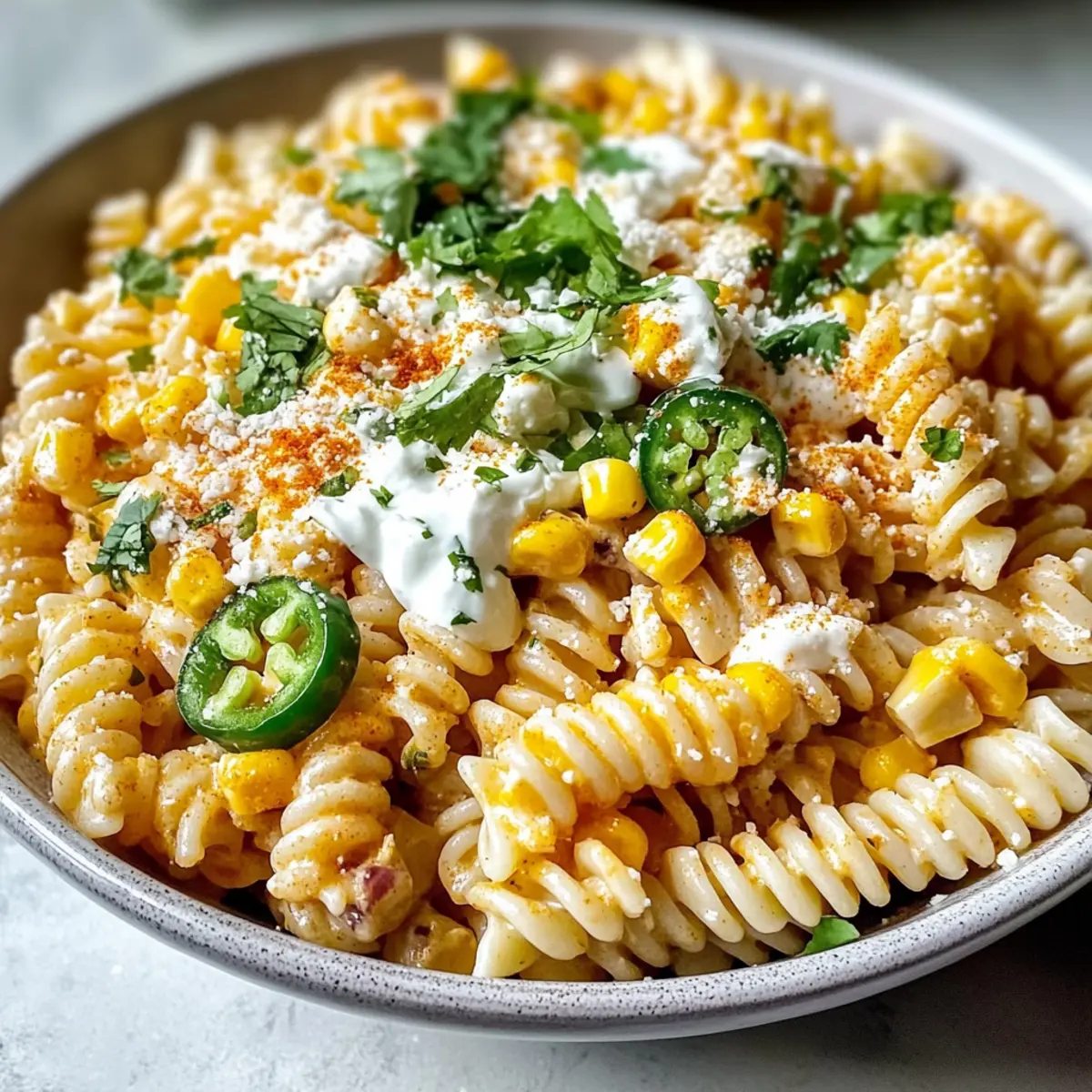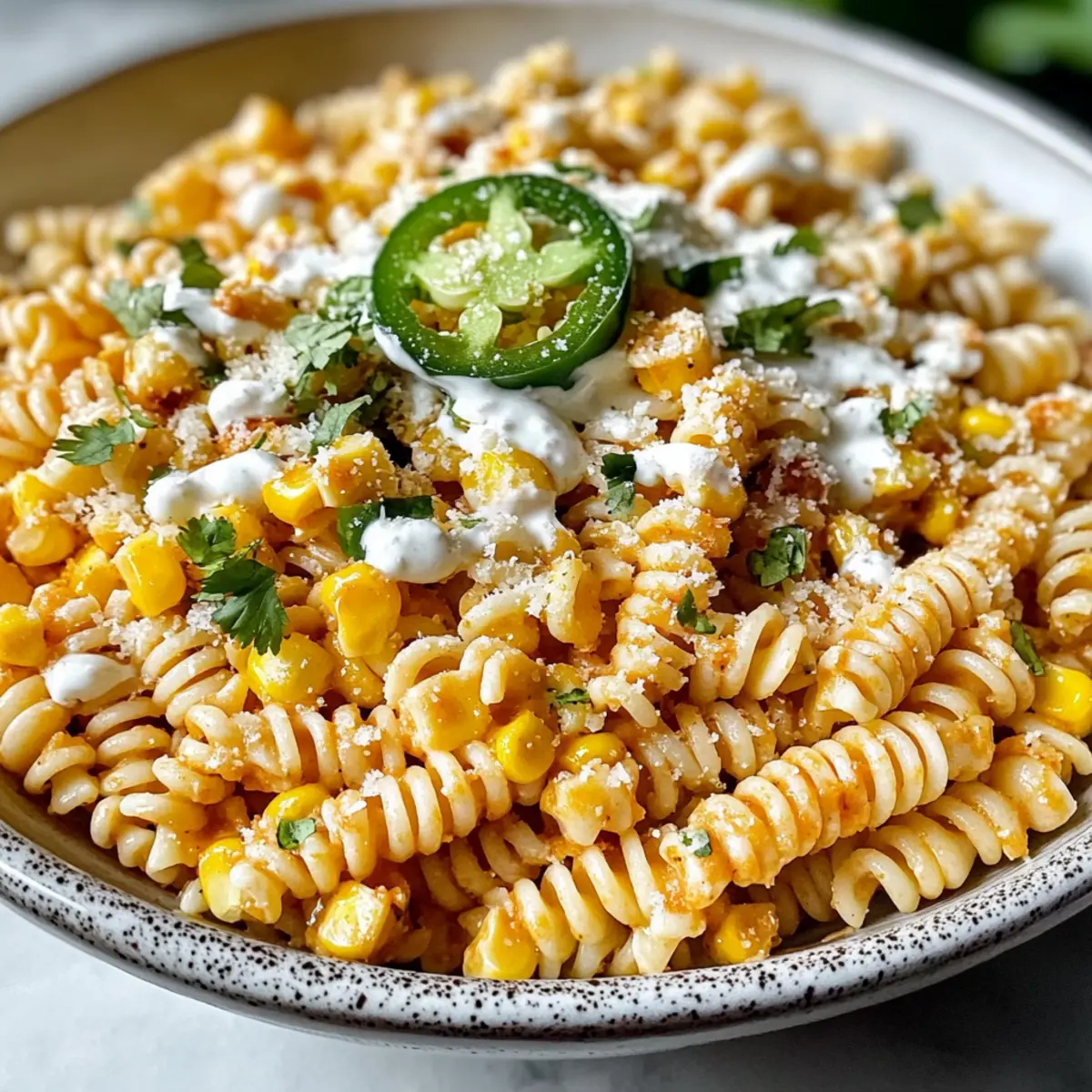 Vibrant Flavors: This Healthy Mexican Street Corn Pasta Salad bursts with zesty lime and spicy jalapeño, making each bite a fiesta for your taste buds.