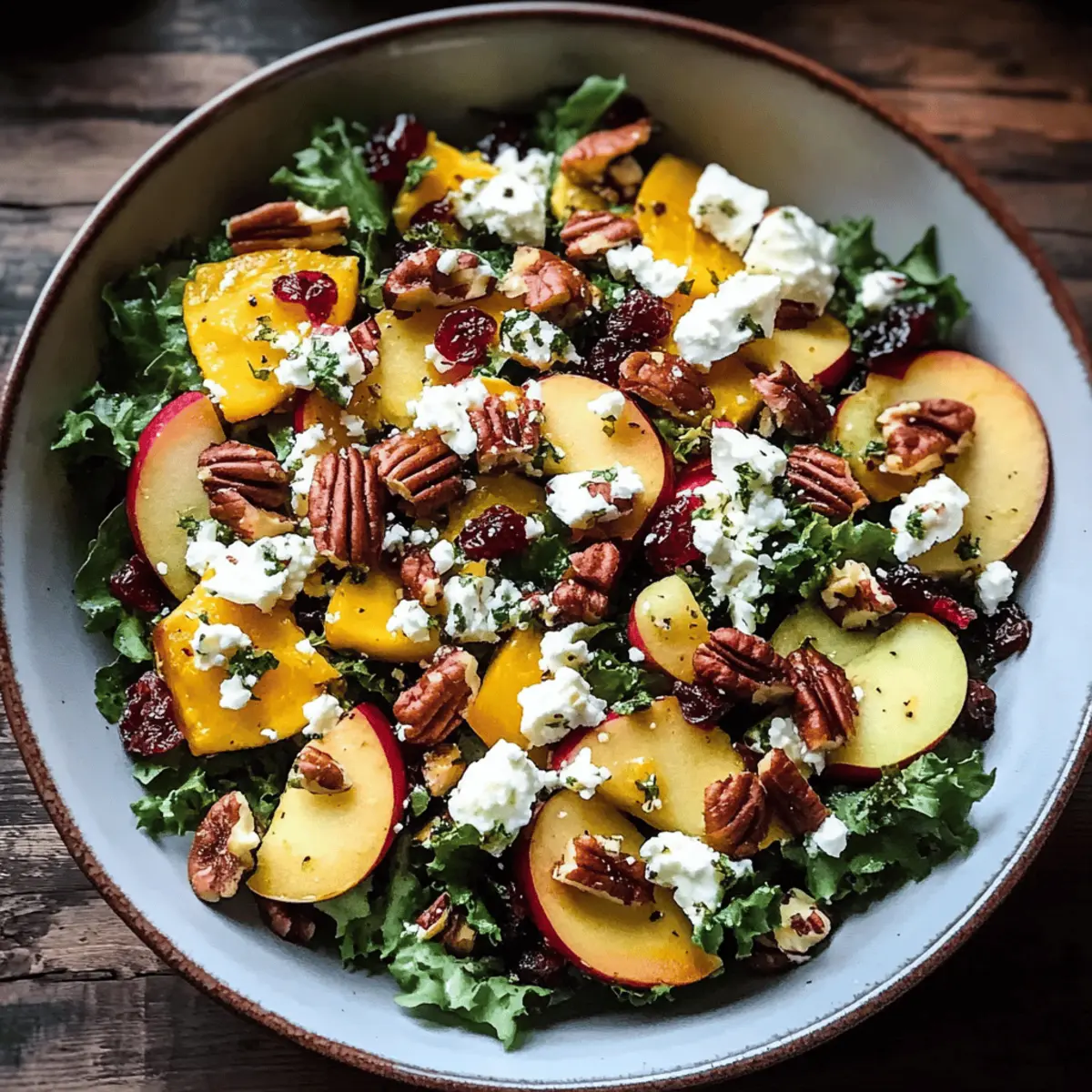 Vibrant Ingredients: This salad showcases a beautiful medley of autumn colors, with sweet Honeycrisp apples and roasted butternut squash stealing the show.