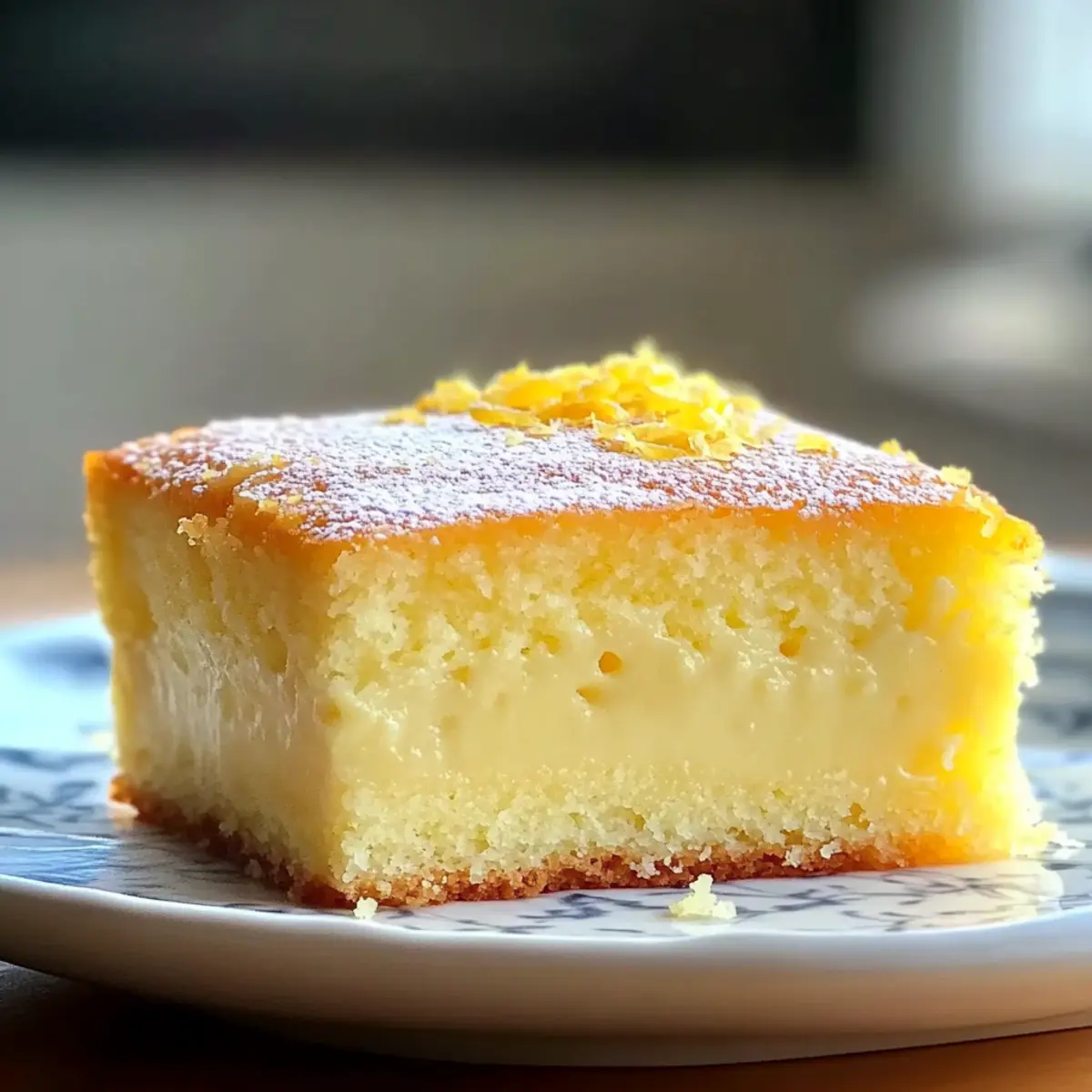 Serving Style: Dust with powdered sugar just before serving for an elegant touch and to enhance the flavor profile of your Lemon Custard Cake.