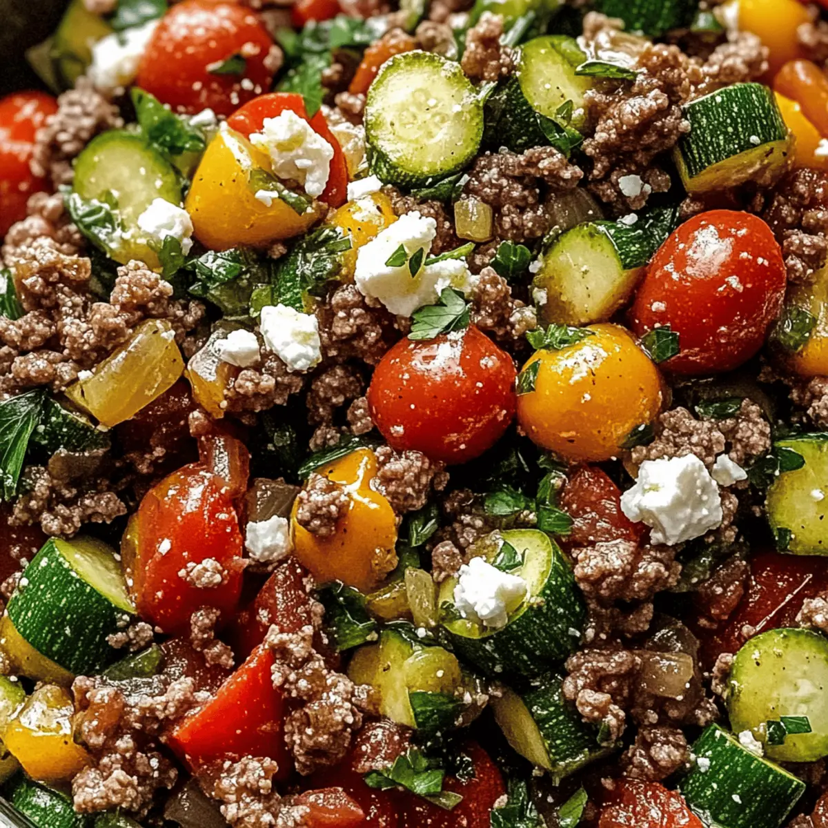 The aroma of sizzling garlic and fresh herbs whisked me back to sun-drenched Mediterranean markets, where vibrant colors and bold flavors dance in the air. My Mediterranean Ground Beef Stir-Fry is a delightful embodiment of those cherished memories, bringing a taste of home-cooked joy right to your table in just 30 minutes! This quick, customizable dish is not only a lifesaver for busy weeknights but also a healthy alternative to fast food, delivering a punch of flavor while catering to various dietary preferences. With a medley of ingredients ready to adapt to what you have on hand, you’ll discover a new favorite that never feels repetitive. Curious to see how easy it is to transform your dinner routine? Let’s get cooking!
