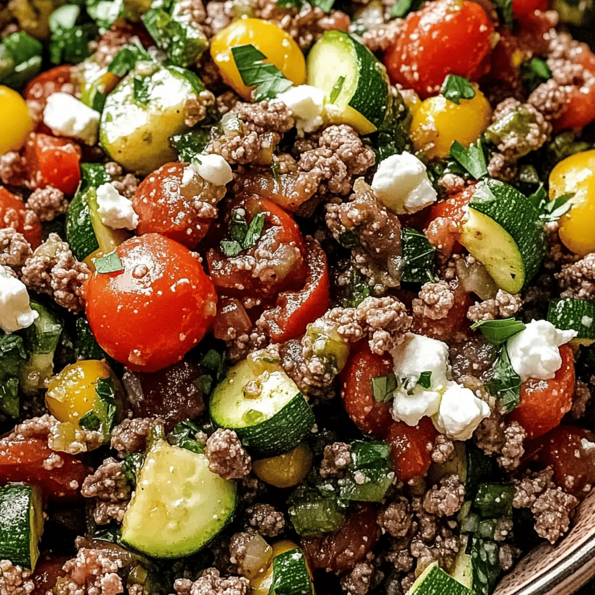 With these ingredients, you’re ready to create a delightful Mediterranean Ground Beef Stir-Fry that’ll transport you to a lively market brimming with flavor! Enjoy the vibrant tastes you can whip together in just 30 minutes!