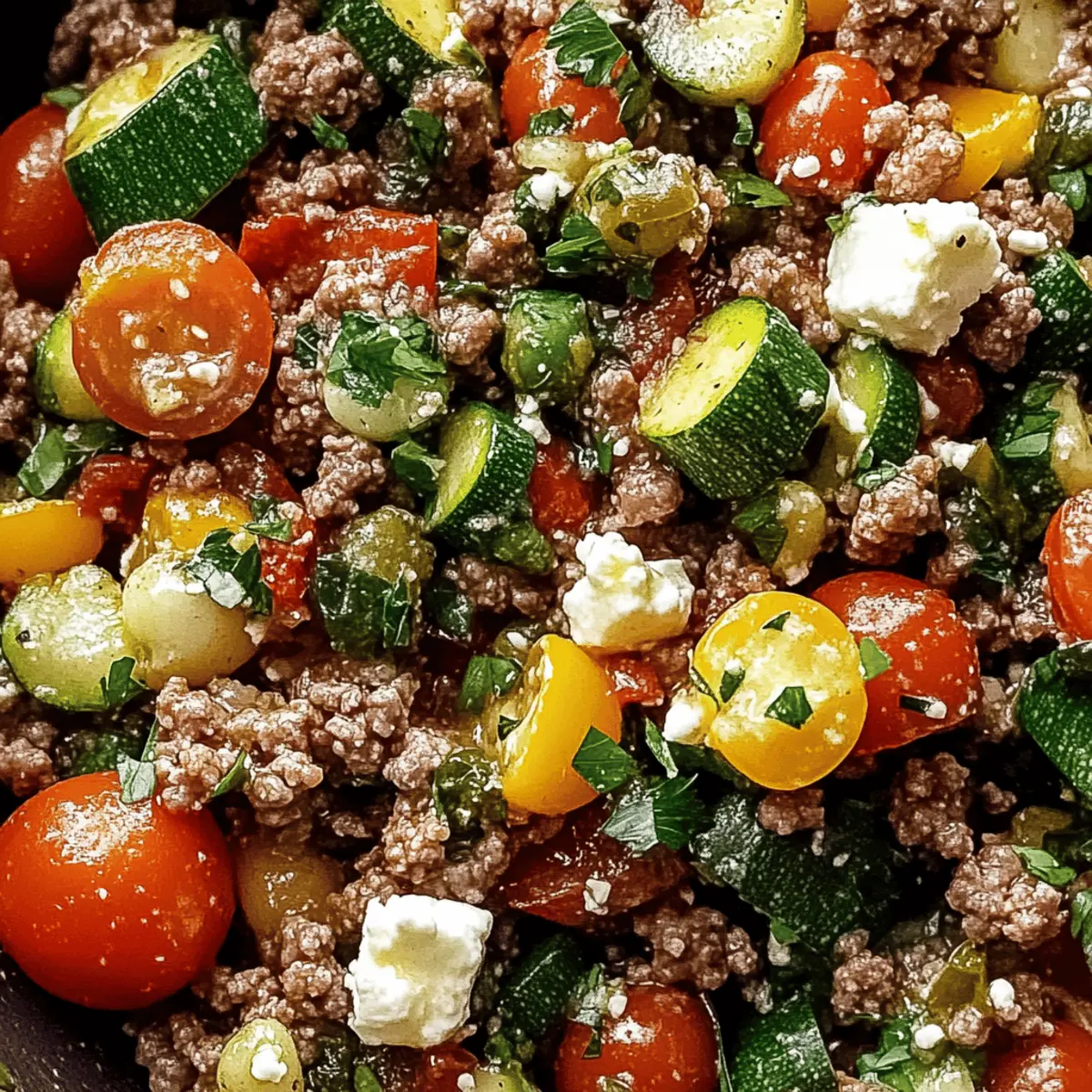 Fold in diced bell pepper and zucchini, sautéing for another 5 minutes. Keep stirring until the vegetables are tender yet still crisp, adding vibrant color and texture to the Mediterranean Ground Beef Stir-Fry. The veggies should remain bright and inviting, balancing the richness of the beef.