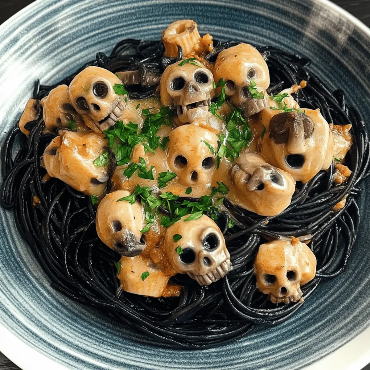 In the midst of autumn’s cool embrace, I found myself in a whimsical culinary adventure that perfectly blended spooky and scrumptious—enter my Mushroom Skulls Spooky Pasta! As Halloween approaches, this dish not only adds a touch of creepiness to your table but also brings the delight of creamy goodness that kids and adults alike can’t resist. Made with squid ink spaghetti and garnished with charming mushroom skulls, it’s sure to capture the imagination and appetite of even the pickiest eaters. The beauty of this recipe lies in its quick prep time and impressive presentation, making it an ideal centerpiece for your Halloween feast. So, are you ready to conjure up some eerie elegance in your kitchen?