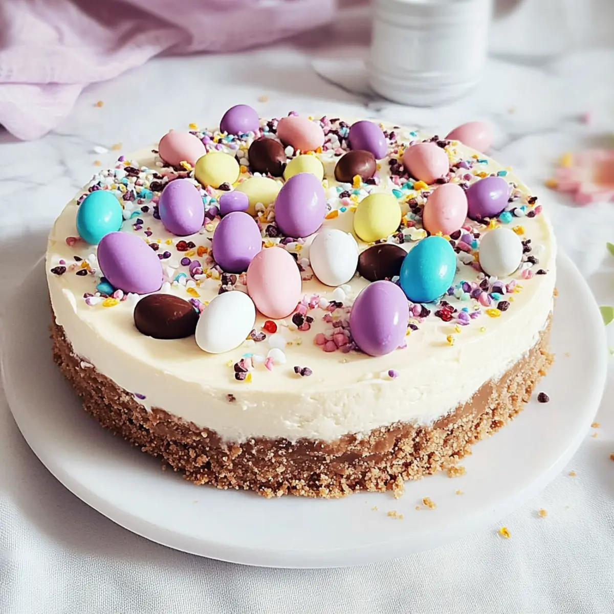 Delight in this No Bake Easter Cheesecake, a festive dessert that's easy to prepare and impresses with creamy filling and crunchy crust.