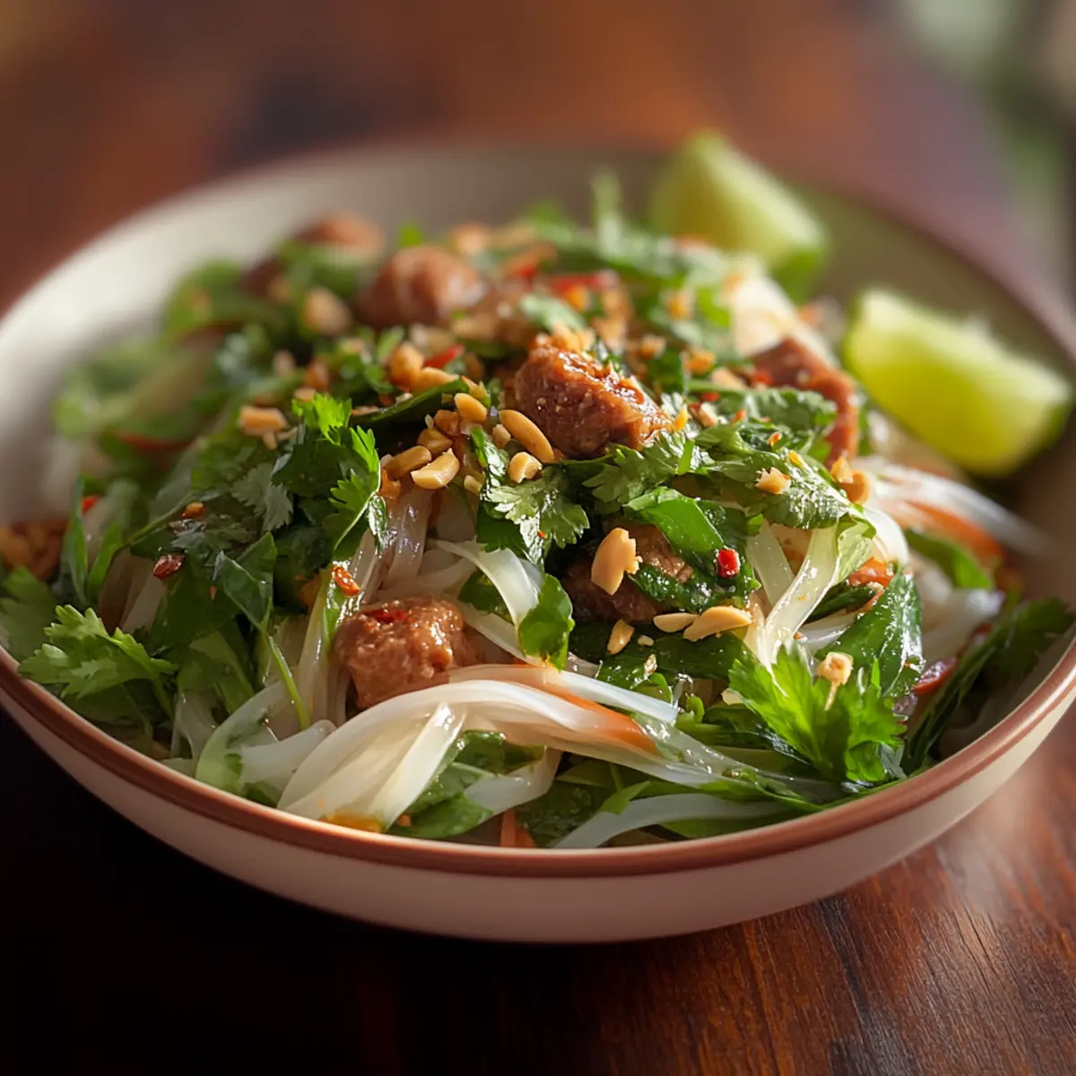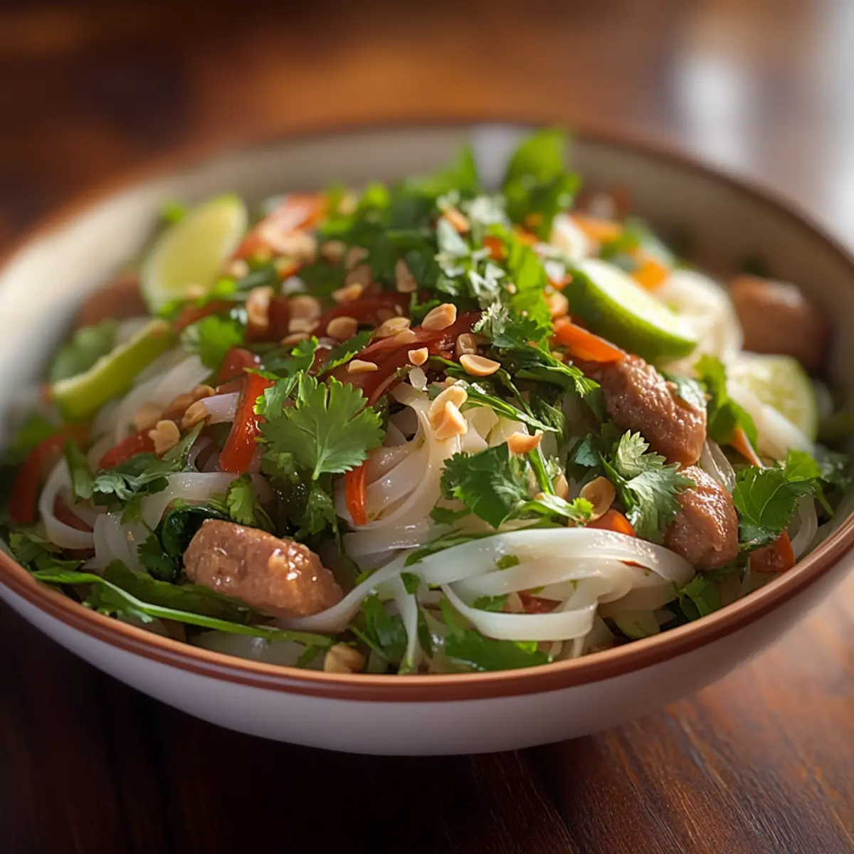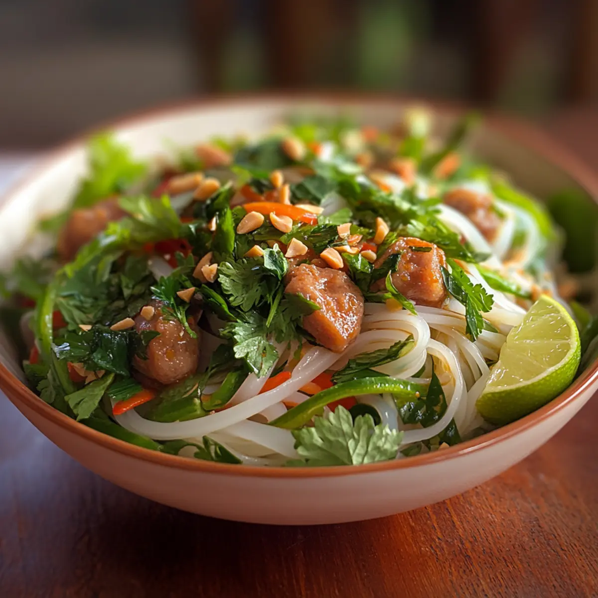 Pho Tron (Vietnamese Salad) is a vibrant noodle salad that combines the essence of traditional pho with fresh ingredients.