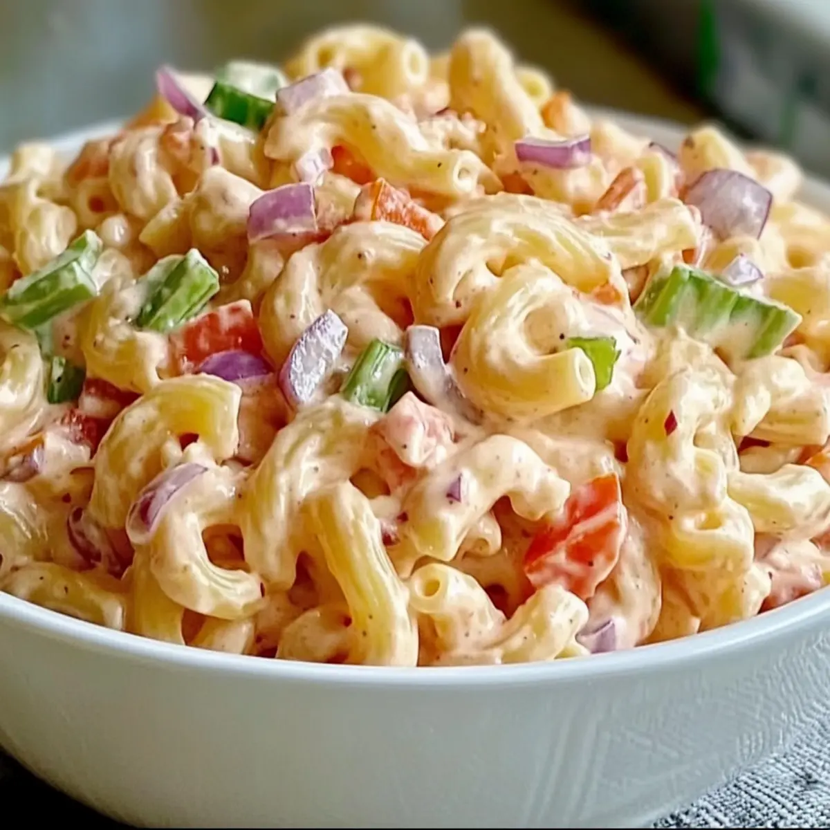 Fresh Vegetables: Cut your veggies just before mixing them in to maintain their crunch. Adding them too early can lead to a wilted texture in the Pink Cadillac Pasta Salad.