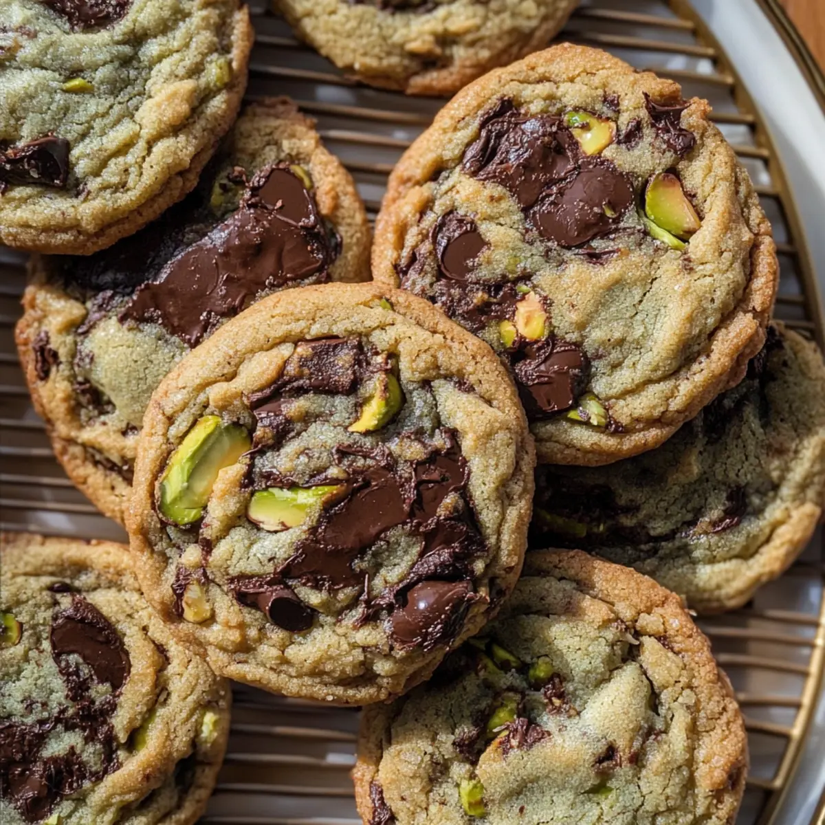 After baking, let the cookies rest on the tray for 5 minutes before transferring them to a wire rack. This resting period allows the cookies to firm up slightly while retaining their gooey centers, making your Pistachio Cream Chocolate Chip Cookies even more scrumptious.