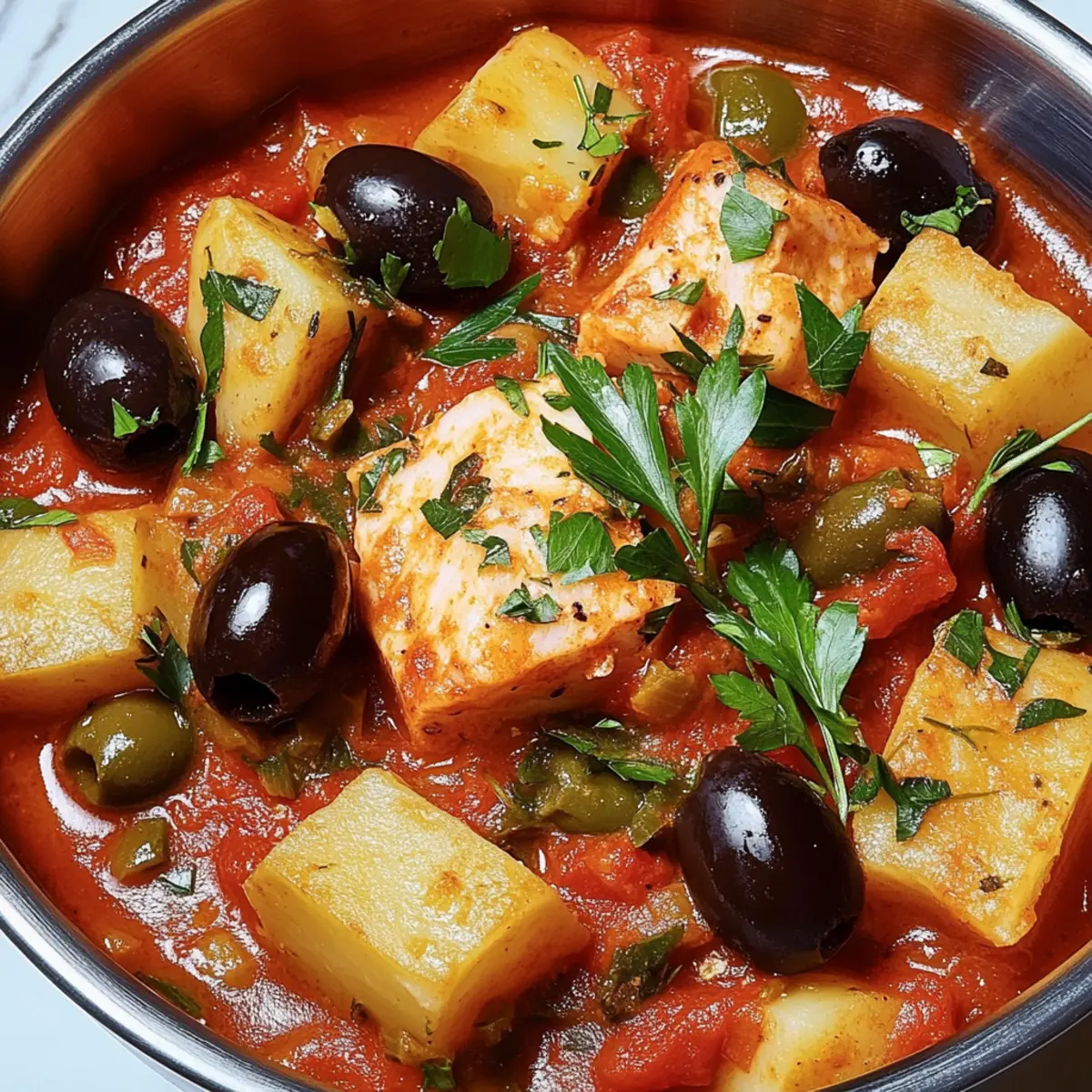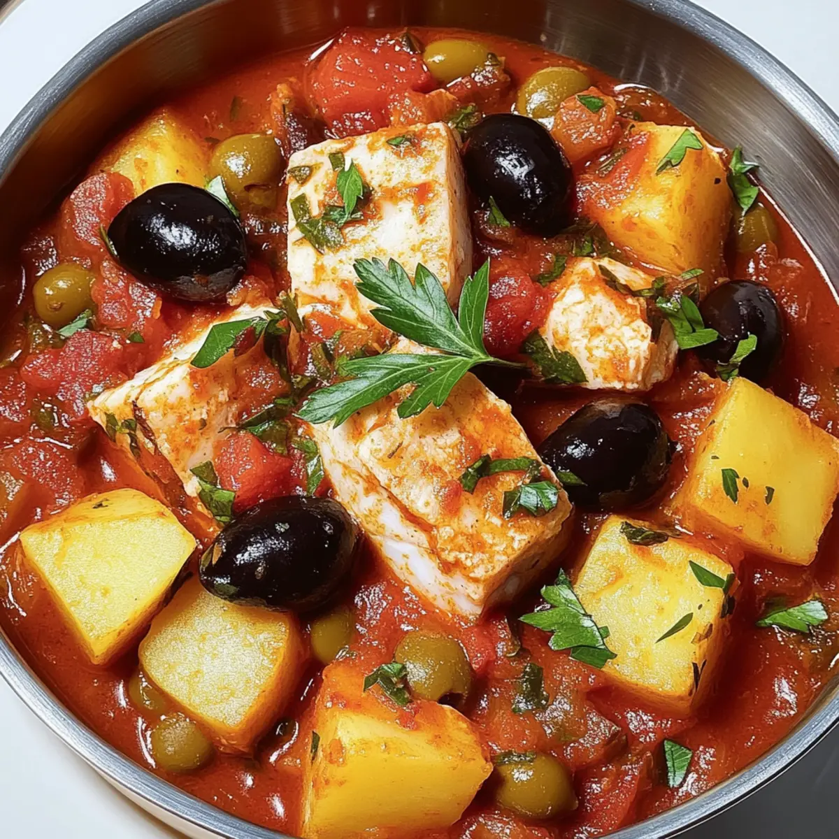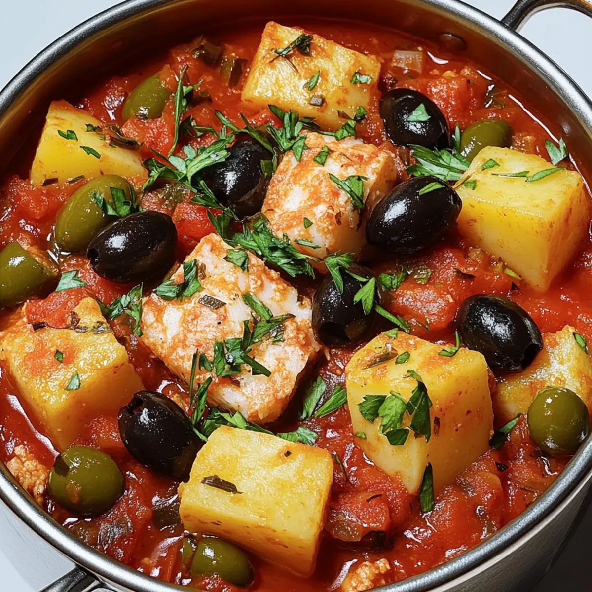 Finally, stir in a handful of pitted black olives and a tablespoon of capers for added brininess. Adjust salt and pepper to taste, as the dish may already have a savory profile due to the olives and cod. Once everything is heated through, garnish with fresh parsley before serving warm. Pair this enticing dish with crusty bread or over polenta for a truly comforting Mediterranean feast.
