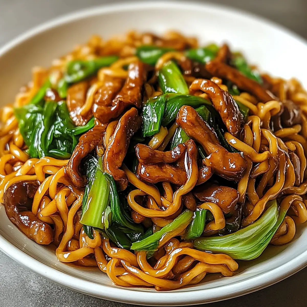 Once everything is heated and combined, transfer your delicious Savory Shanghai Fried Noodles to a serving platter. Garnish with additional chopped green onions or a sprinkle of sesame seeds for a delightful crunch. This final touch not only adds visual appeal but also enhances the flavors, inviting everyone to dig into this quick and satisfying dish.