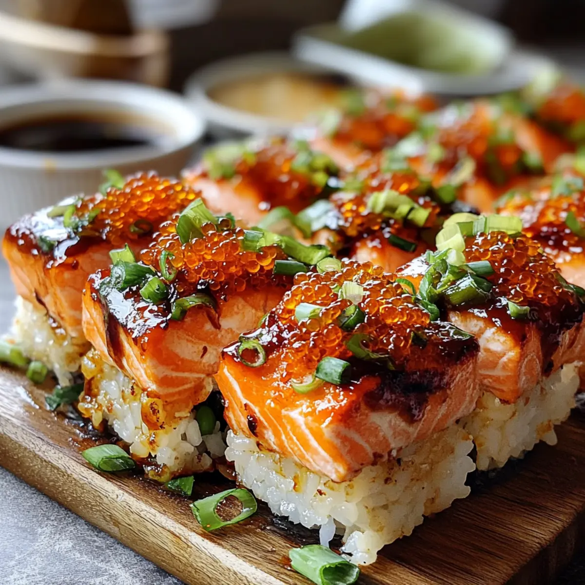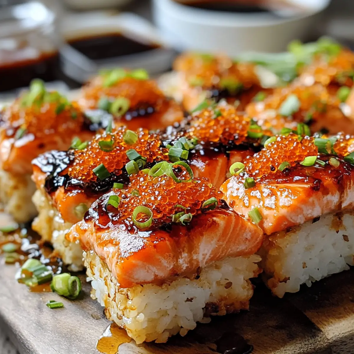 After baking, remove the dish from the oven and let it cool slightly. To finish, garnish with additional sliced green onions, crispy nori, and optional tobiko for an added burst of flavor and color. Serve the Spicy Salmon Sushi Bake warm, inviting everyone to dig in and enjoy this comforting, flavor-packed dish that’s sure to become a family favorite.