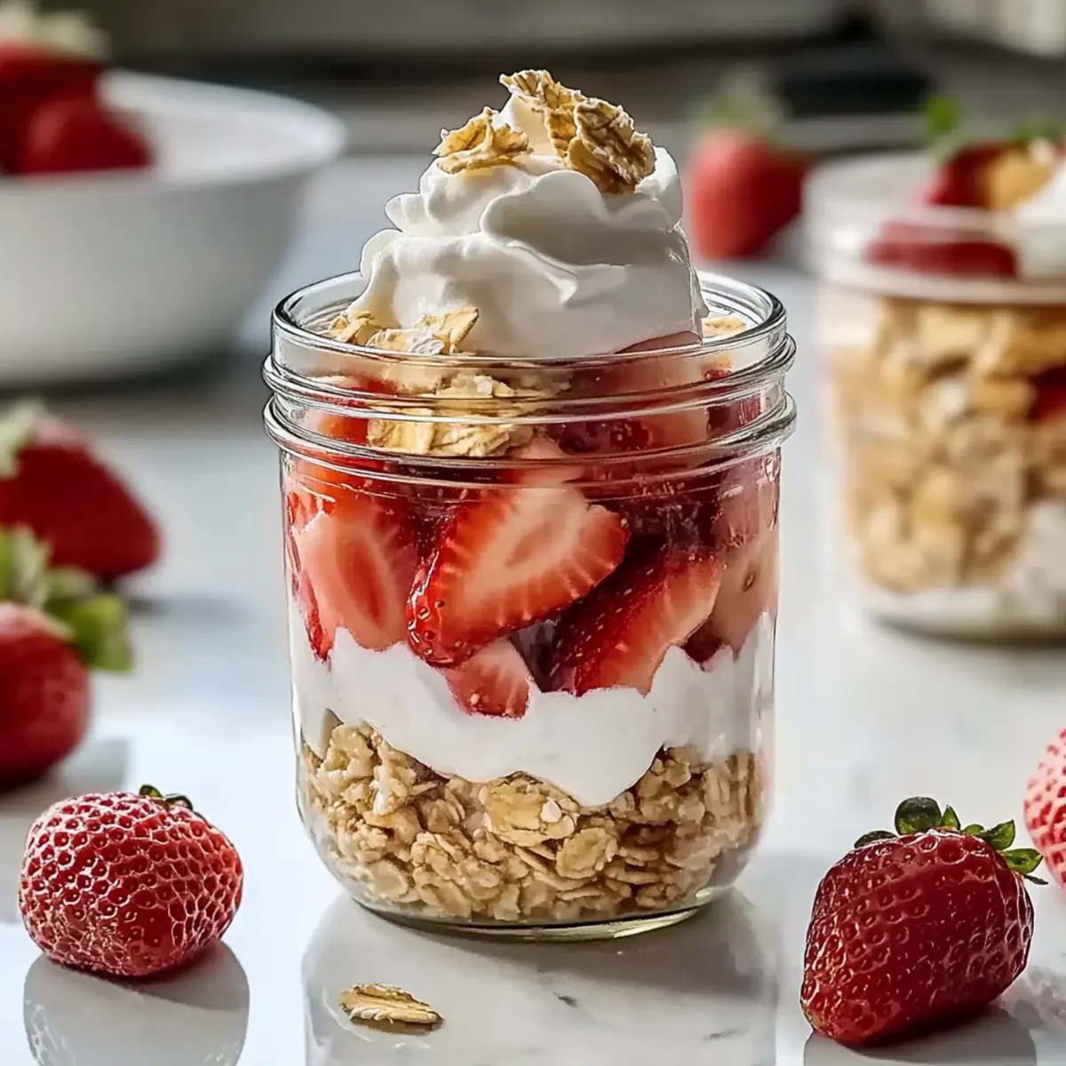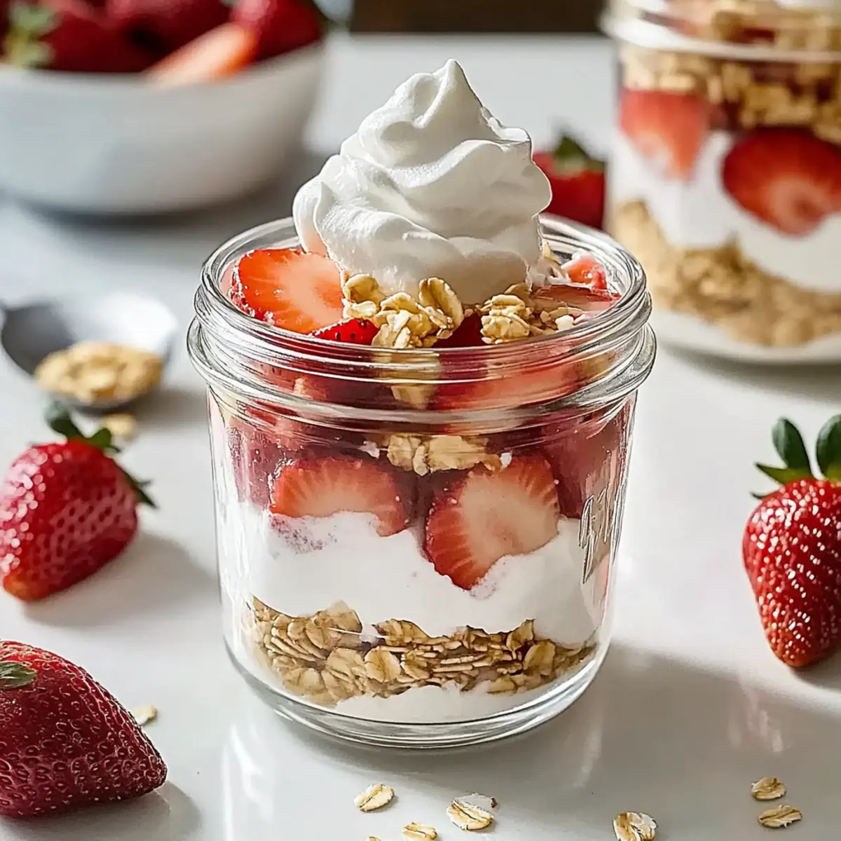 Transfer the mixture into a mason jar or an airtight container. If you like, layer additional strawberry pieces on top for visual appeal and flavor enhancement. This layering allows for a delightful bite with each spoonful. Seal the container tightly to keep all the delightful flavors locked in.