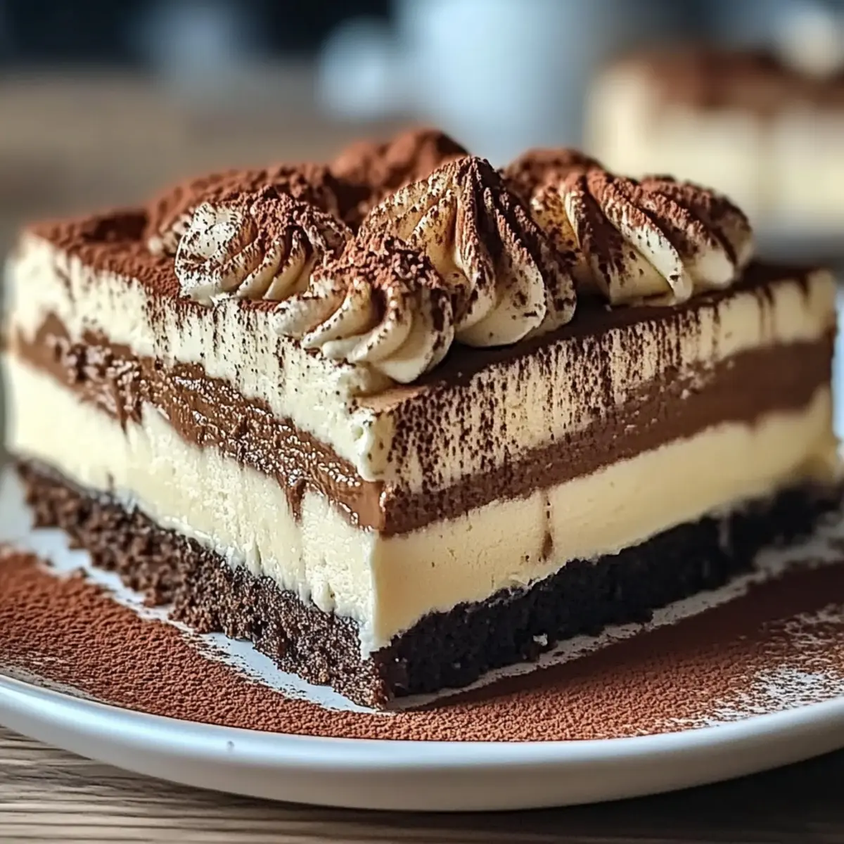 Impressive Presentation: The elegant layers and cocoa dusting ensure this cheesecake not only tastes divine but also looks stunning on any table.