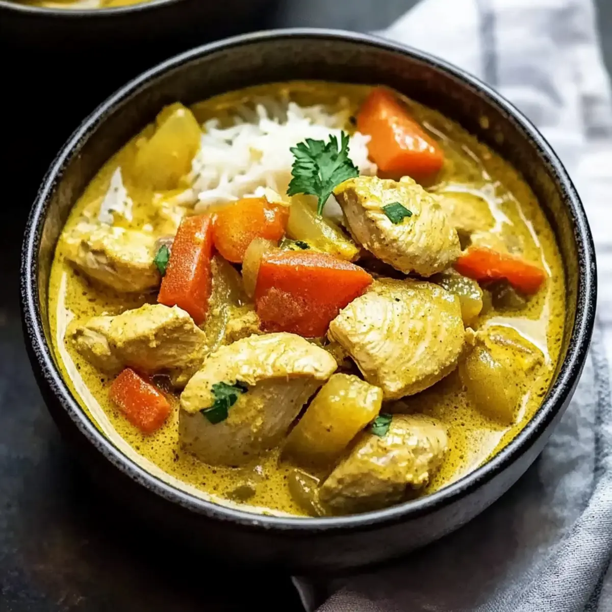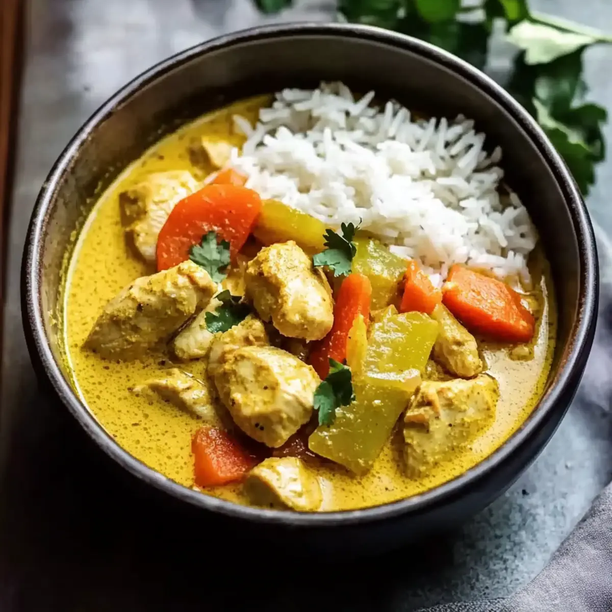 These Authentic Yellow Curry with Chicken bowls are a lifesaver for busy home cooks looking to streamline meal prep! You can chop your vegetables and marinate the chicken up to 24 hours in advance, storing them together in an airtight container in the refrigerator. Additionally, the curry base (without the coconut milk) can be prepared and refrigerated for up to 3 days. To maintain quality, be sure to cover the pot tightly or use a container that minimizes air exposure. When you’re ready to serve, simply reheat the curry base, stir in the coconut milk, and allow it to simmer gently until heated through. You’ll have a delicious Thai yellow curry ready in no time!