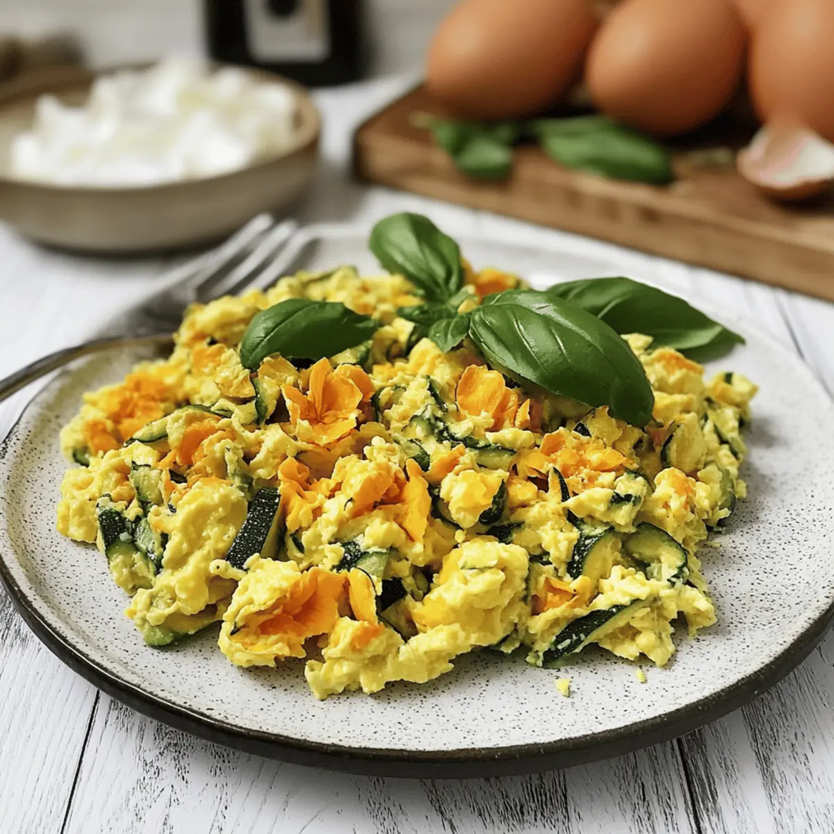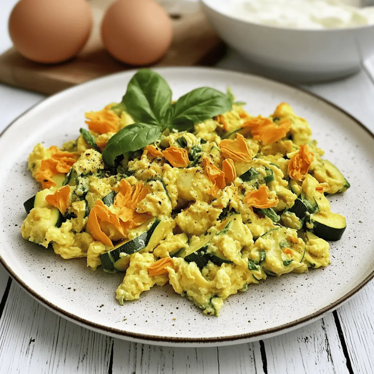 These Zucchini Blossom and Egg Scramble ingredients are perfect for meal prep enthusiasts! You can prepare the zucchini blossoms and diced onion up to 24 hours in advance, storing them in an airtight container in the refrigerator. This not only saves you time during busy mornings but also keeps the flavors vibrant and fresh. When you’re ready to serve, simply sauté the prepped onions in olive oil, add the zucchini blossoms, and then incorporate your lightly beaten eggs. Finish cooking just until fluffy for a dish that’s just as delicious as if made fresh! Enjoy that homemade taste with minimal effort!